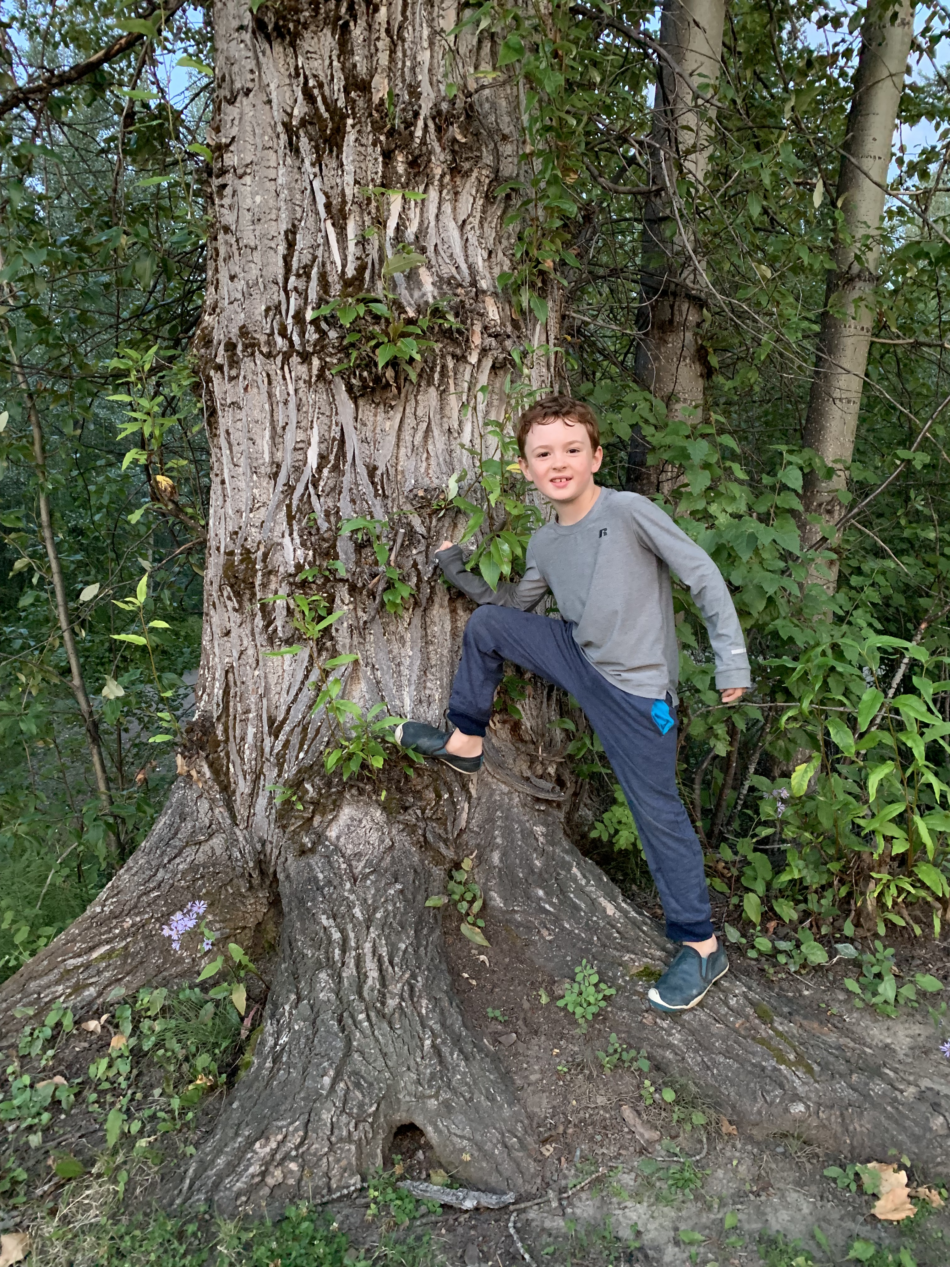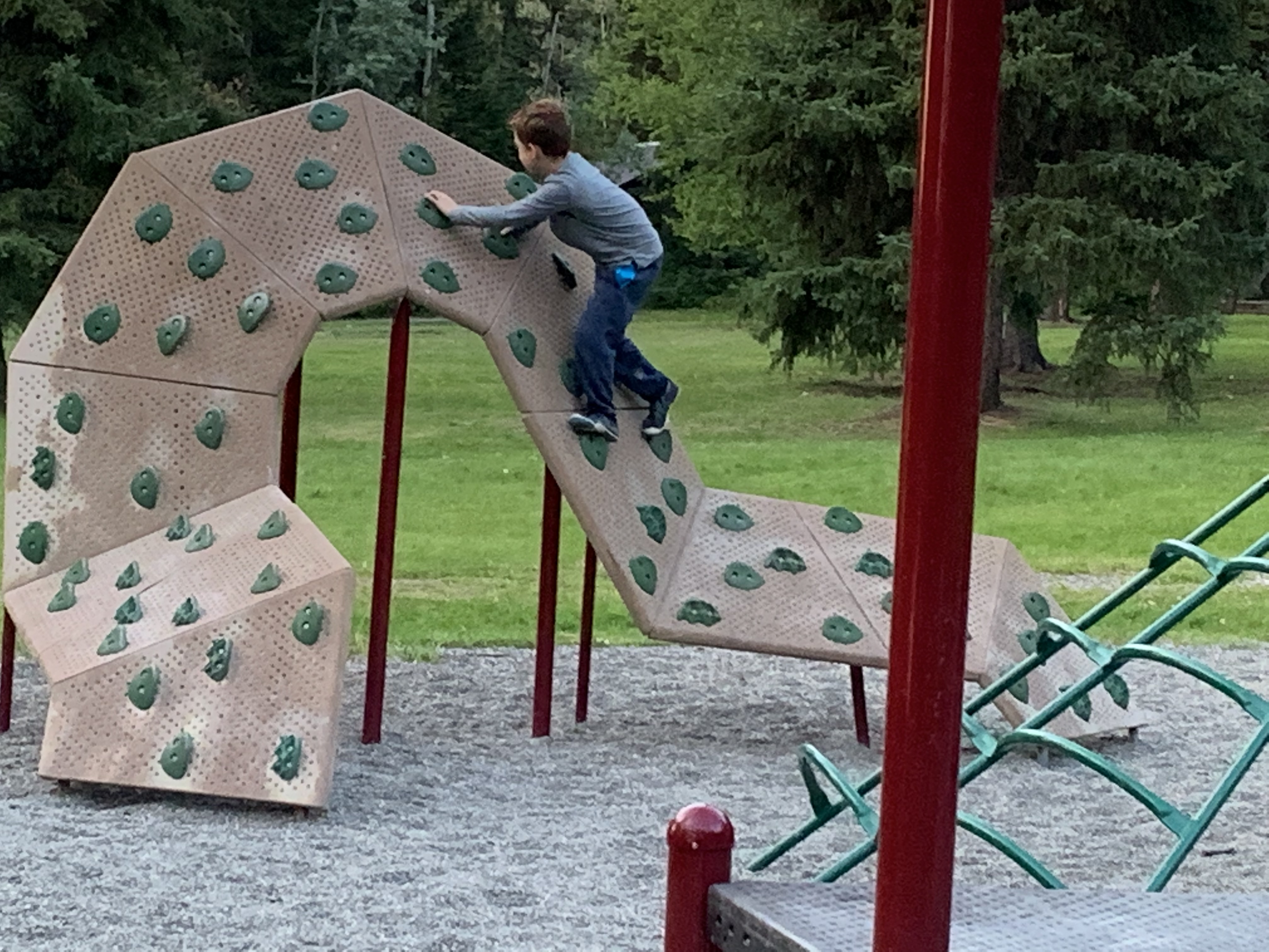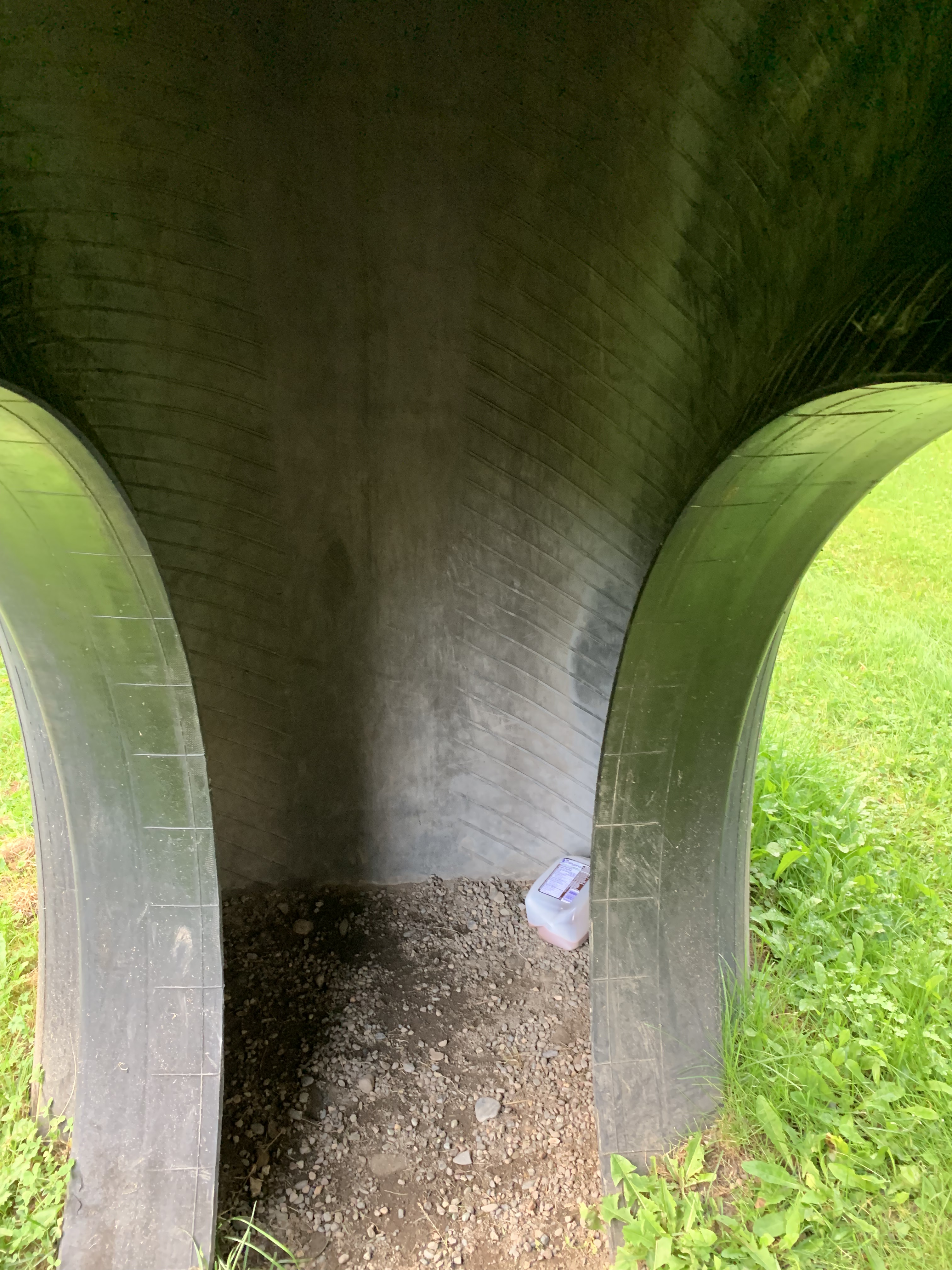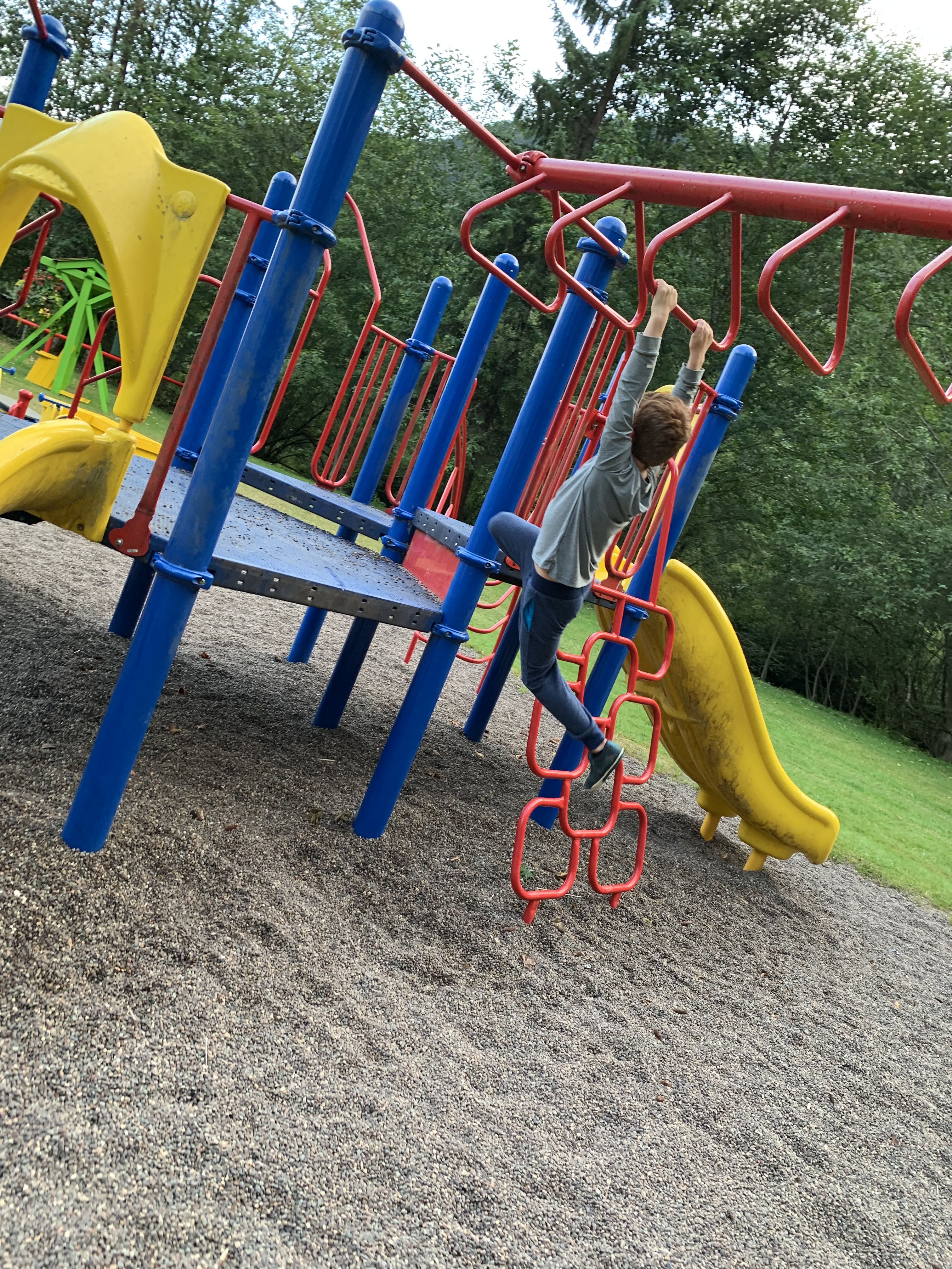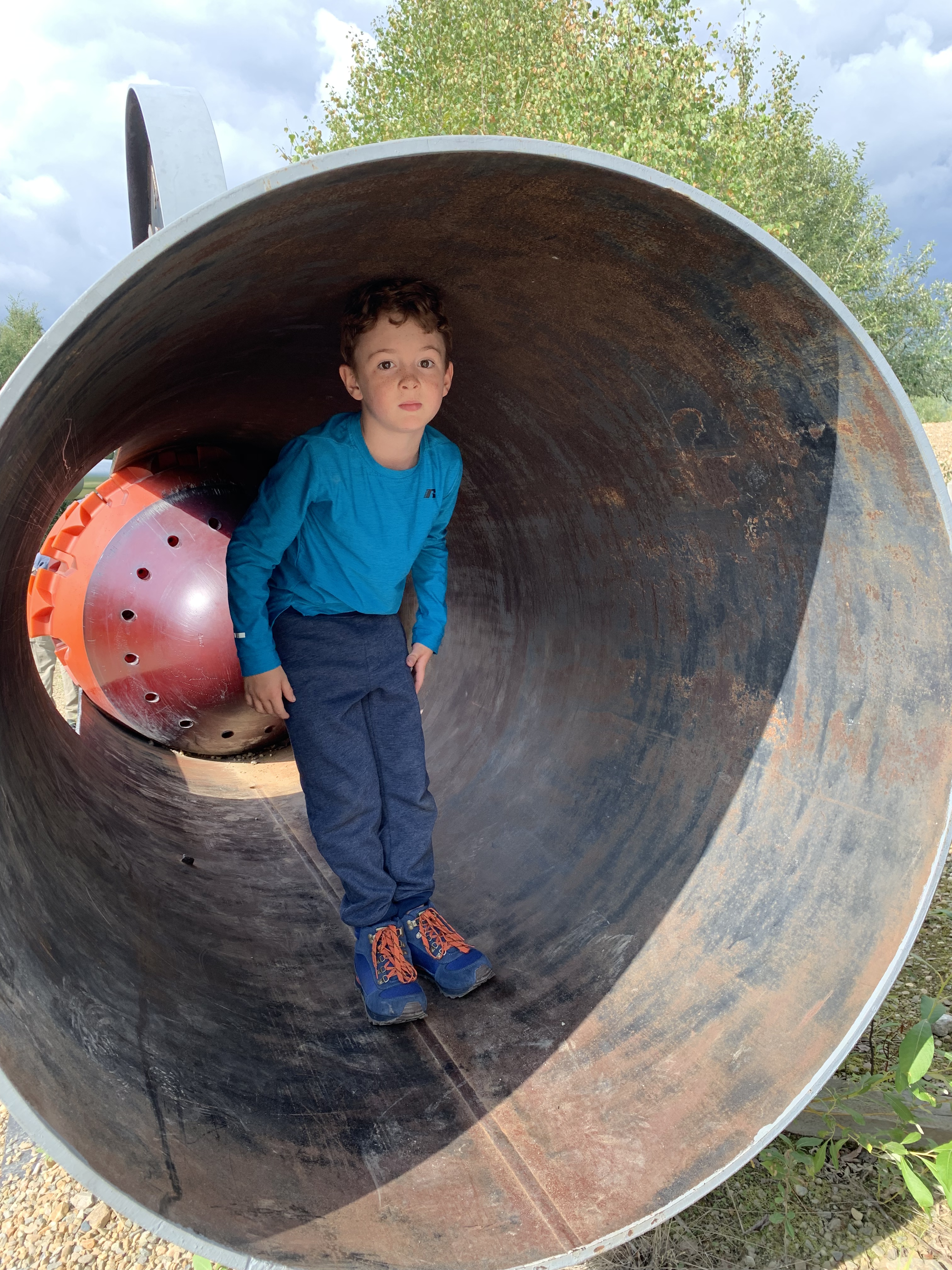 After a simple dinner Paxton and Henri and I walked through the campground to the town playground that happens to border it. He lived it esp the huge tire. Like I told his mom he doesn’t to run out of energy at all. I was invited to check out the interior of this ‘great’ tire and did so after bumping my head slightly. π