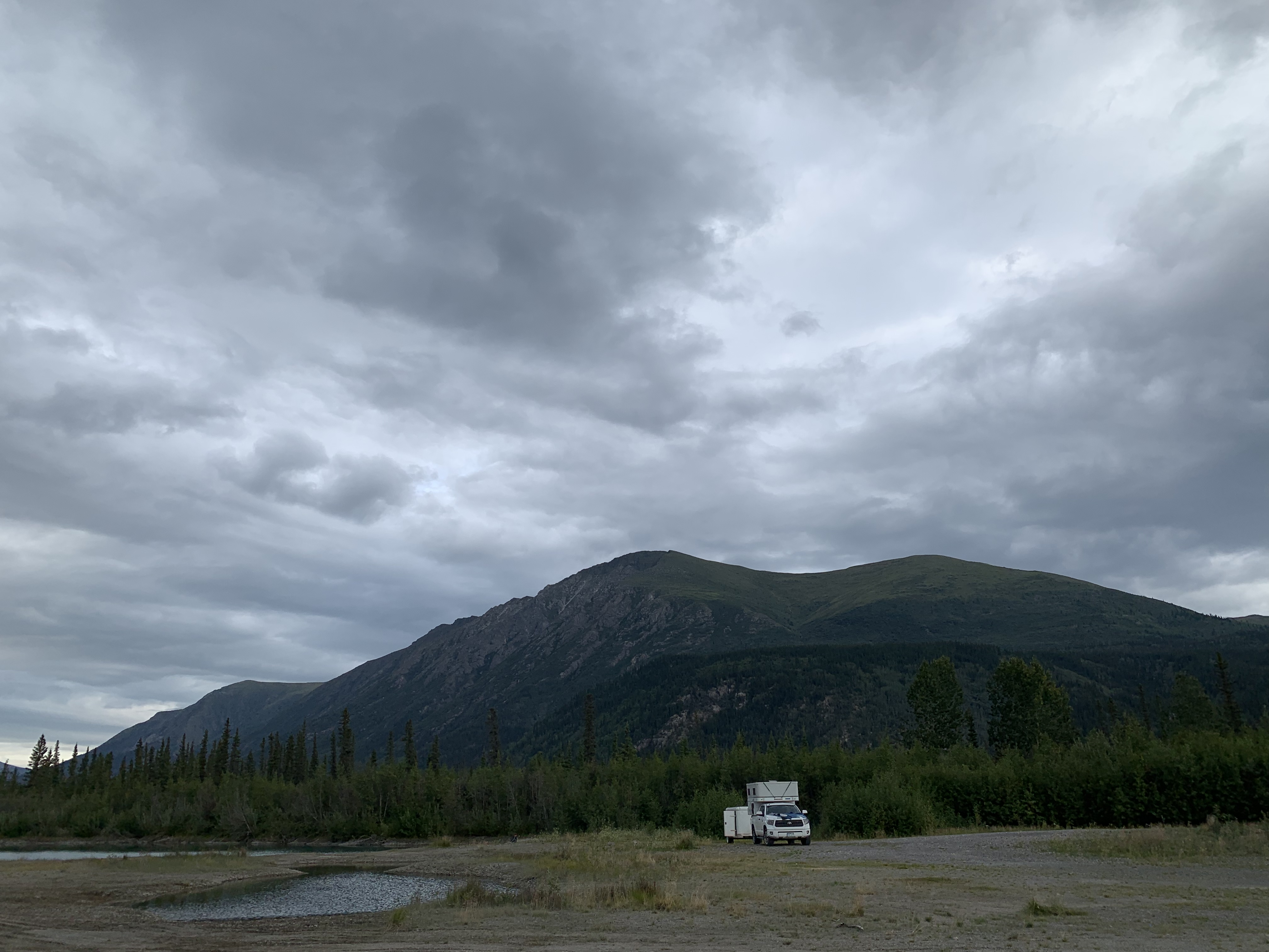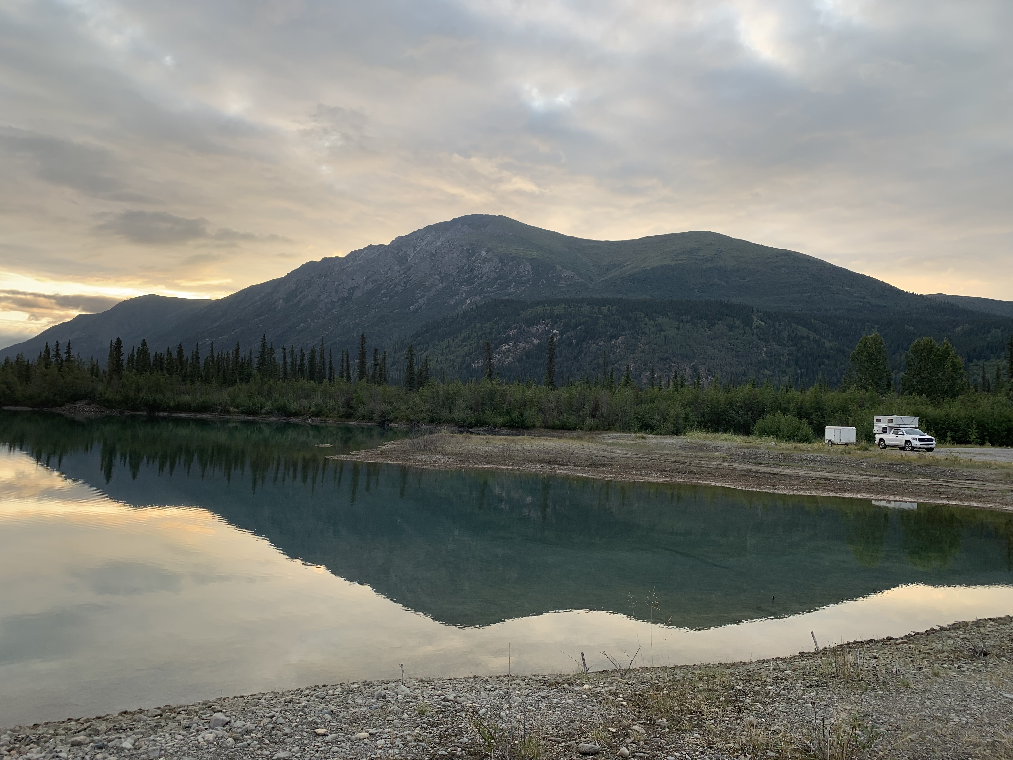 Found two great boon-docking camp spots Friday and Saturday nights in the Yukon. First one was by a couple of ponds and the next morning two juvenile beavers were swimming around and aren’t even afraid of us or the dogs!! They were adorable.