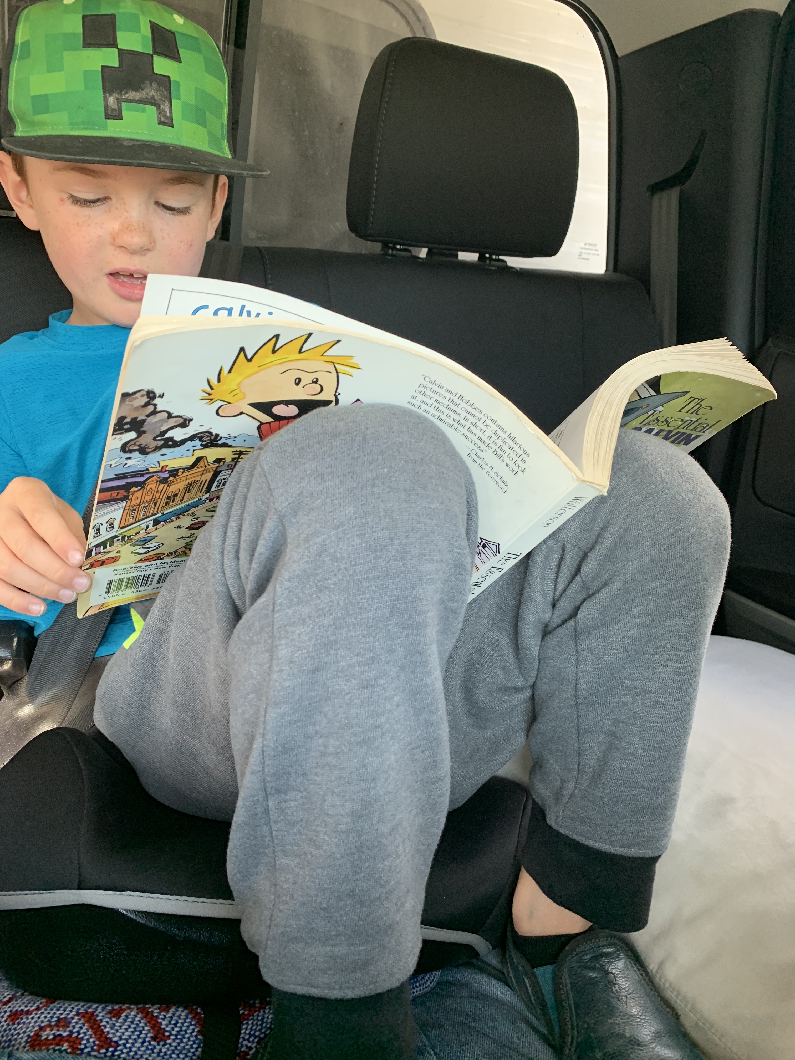 Paxton I know didn’t know what he was getting into on the drive homeward but he’s been a great trooper/traveler! We’ve played a few games he’s fallen in love with Calvin and Hobbs, I have a 1″ thick book of this comic. It’s been a lifesaver giving him lots of laughs reading it.