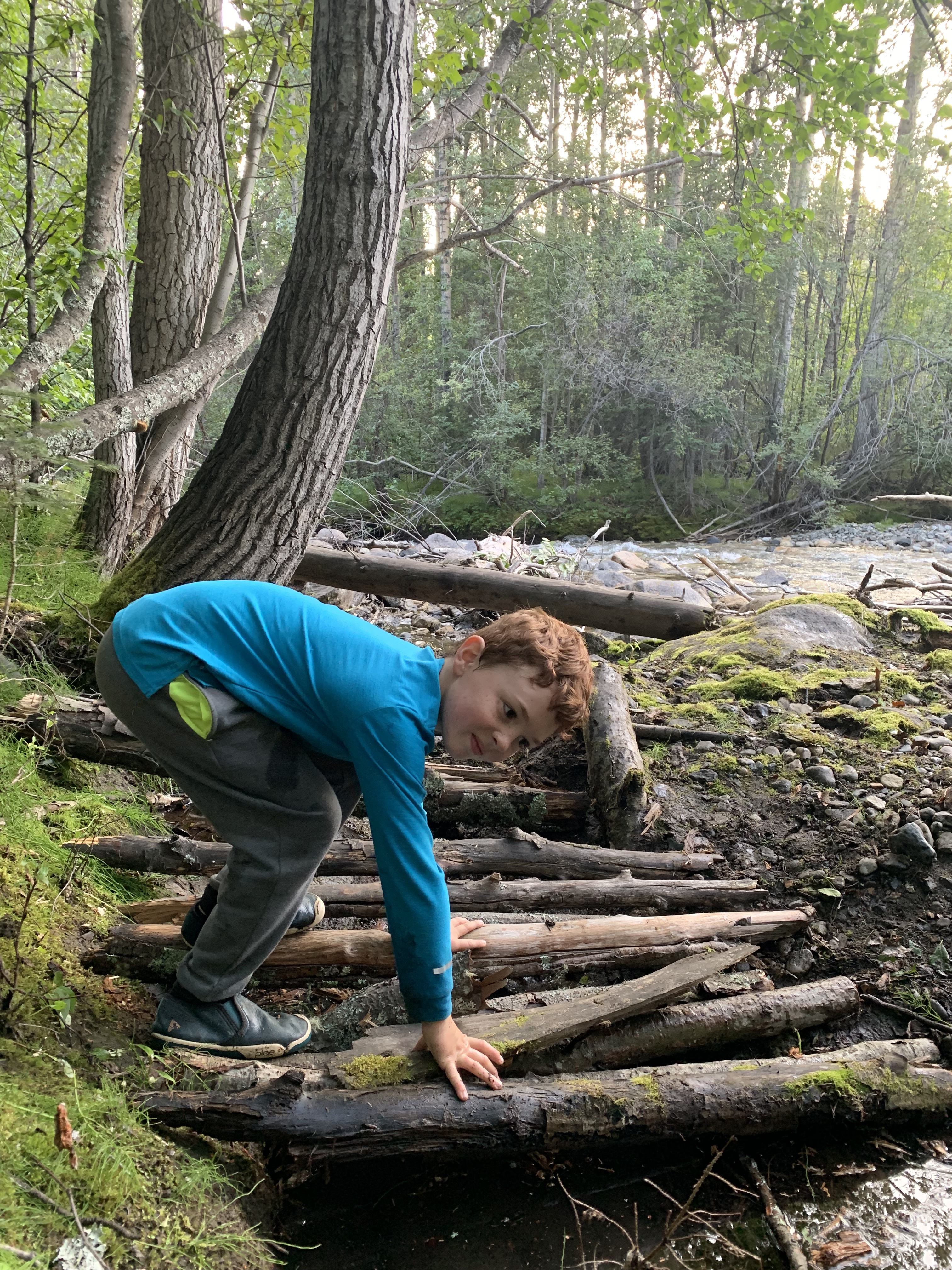 Second night we kept driving and finally found a spot next to a nice creek. Pax has a ball building a bridge. He wanted to stay another night but we are homeward bound and has plans to hang in Seward for two nights. It’s beautiful here.