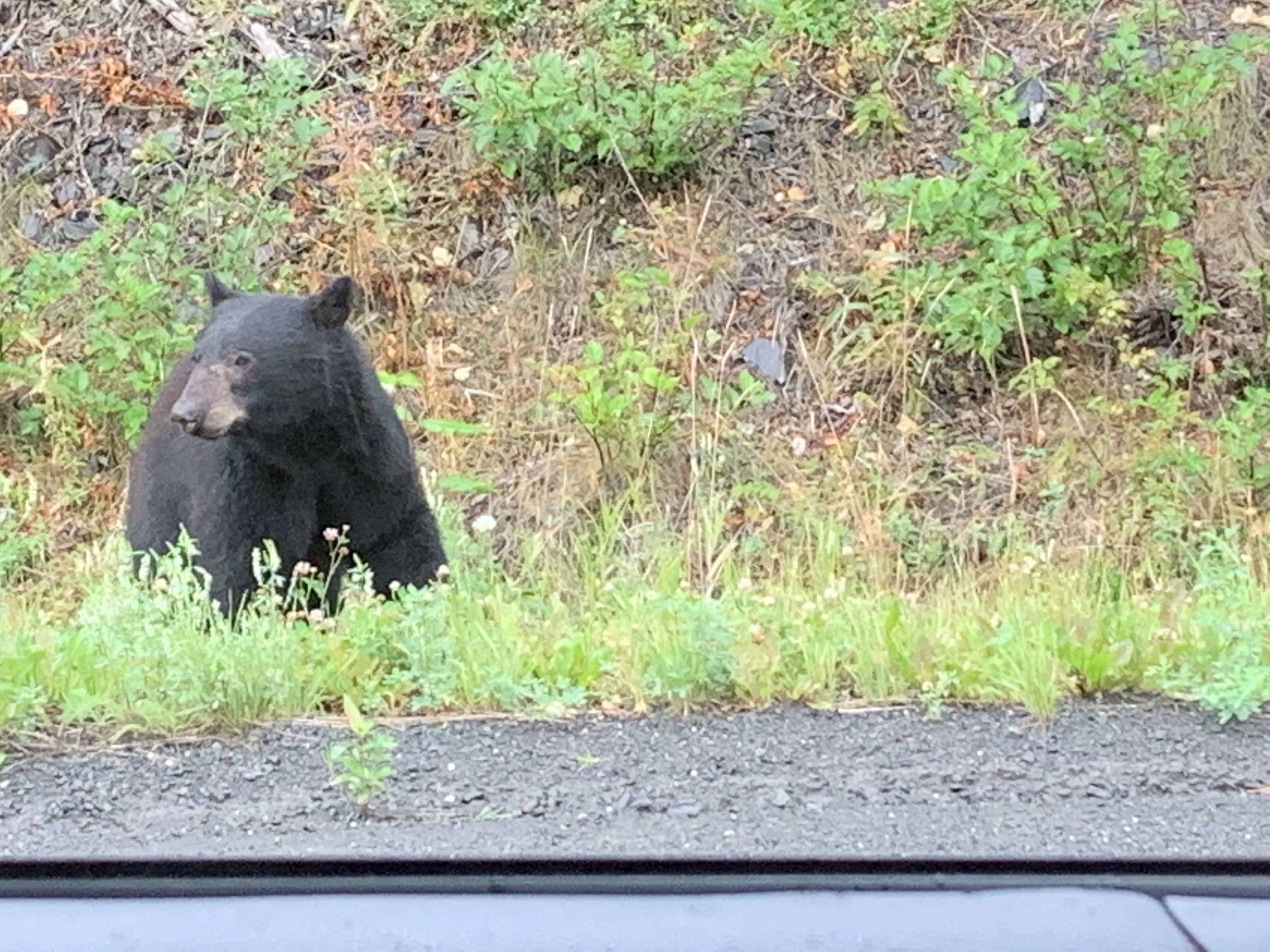 Cliff told me earlier that he just got depressed when he looked at the map and saw how much we still had to go in Canada!!!! I’m the map reader, co-pilot etc he just drives and last time we did put in two long days 12 hours to get miles under us plus all the fires we had to swing east a bunch from our original plan two years ago. But 10 hours is the longest we’ve done so far and having Pax plus being two years older and we just like to enjoy our evenings it will be two nights in Canada still.