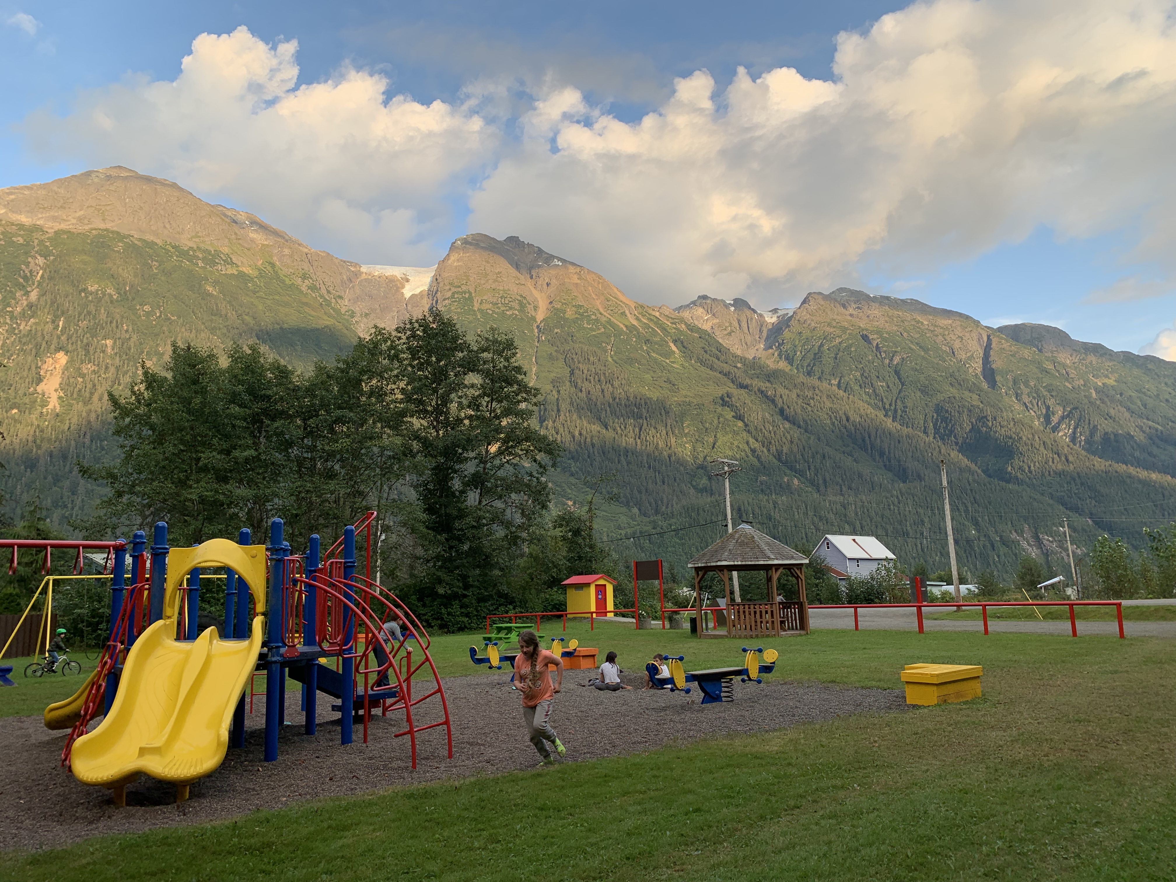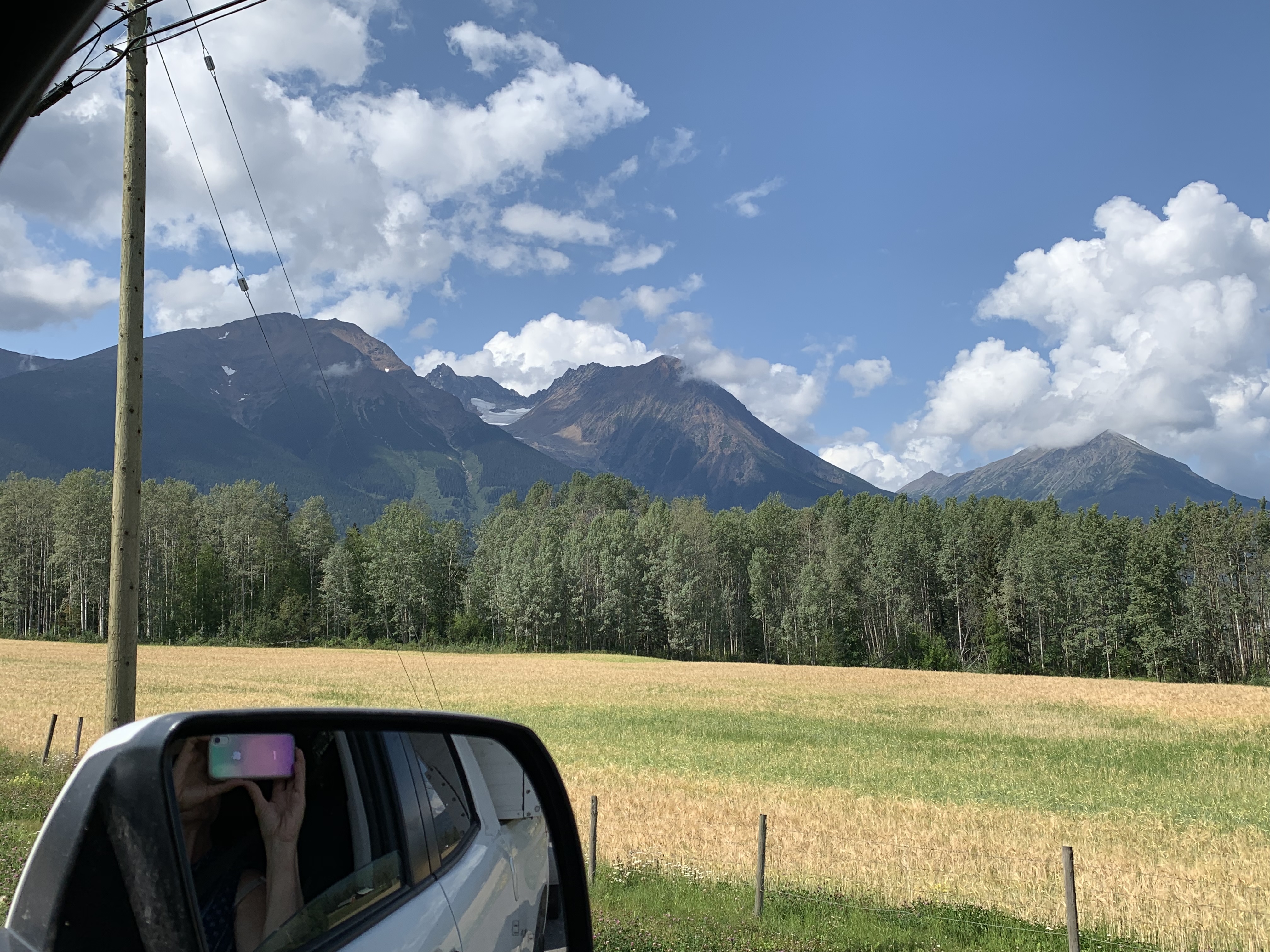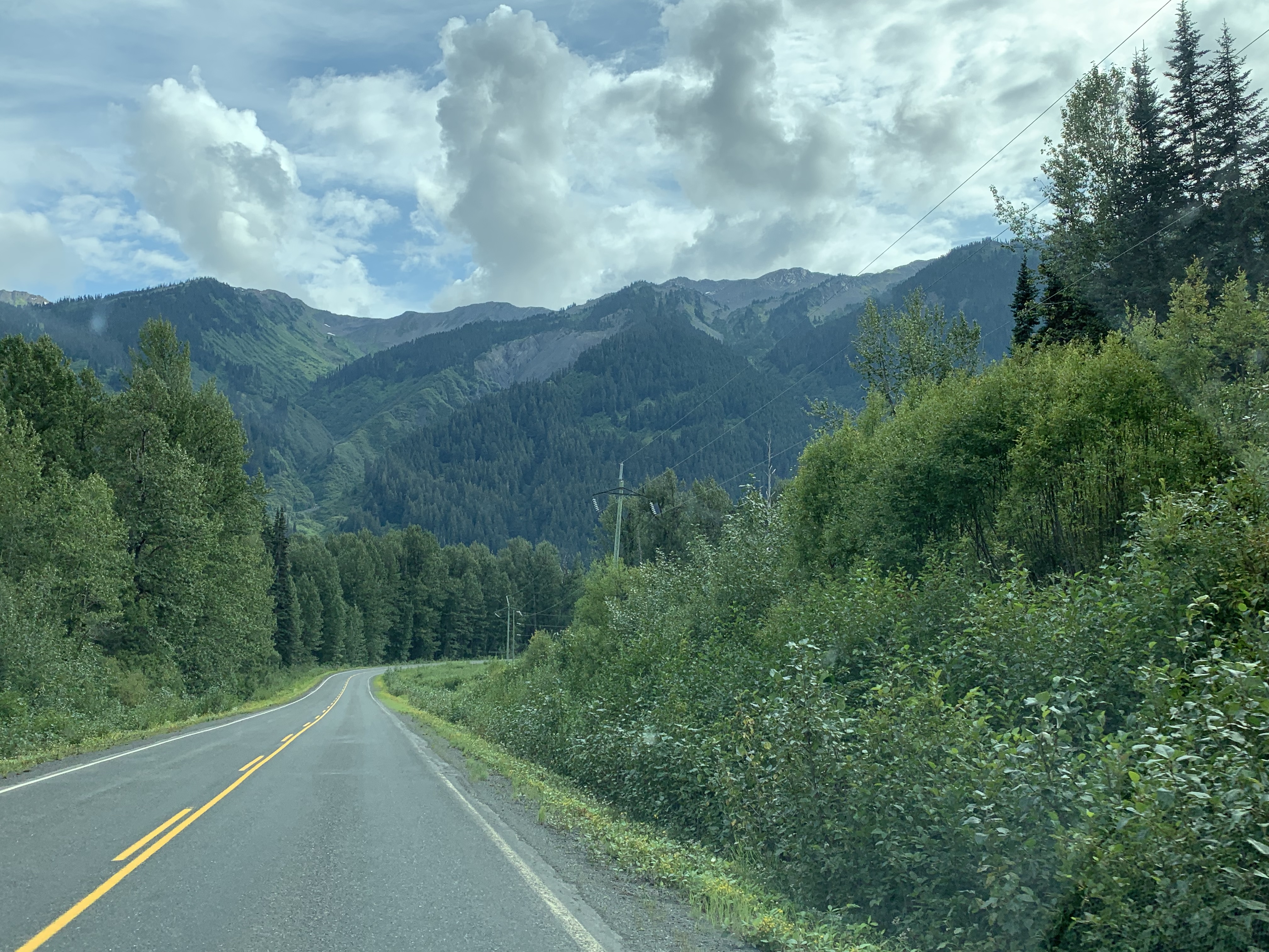 After leaving Stewart BC/Hyder AK, they are side by side basically along the border on the west, we saw more beautiful scenery, and got slowly broken in to civilization more……Yes we were in towns the whole 7 weeks but not driving through many towns along the way. More traffic, more people, etc……
