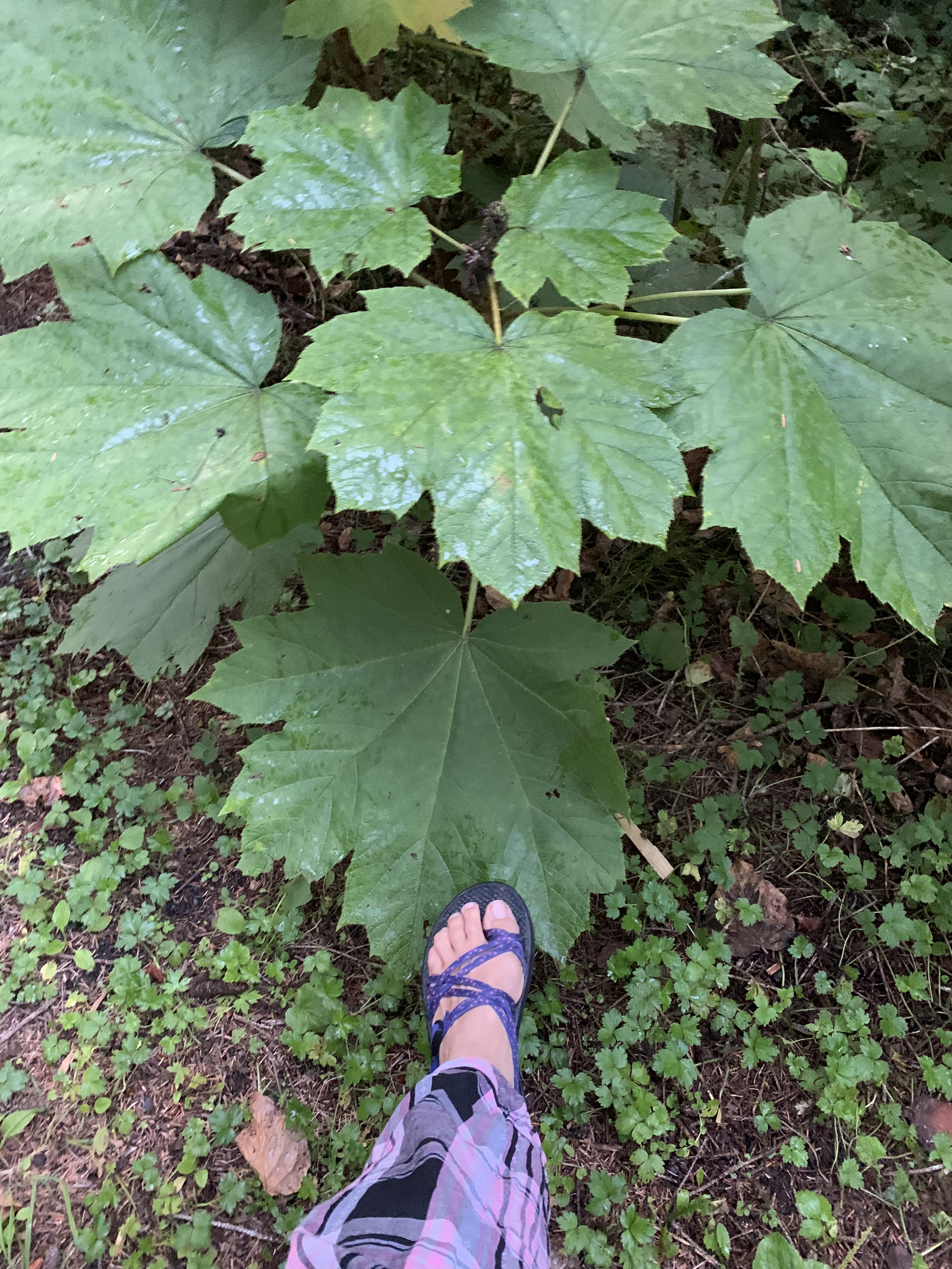 Oh I forgot to mention lovely large trees and this plant and this mornings’ fog out our view as I walk to the bathrooms/showers!!!
