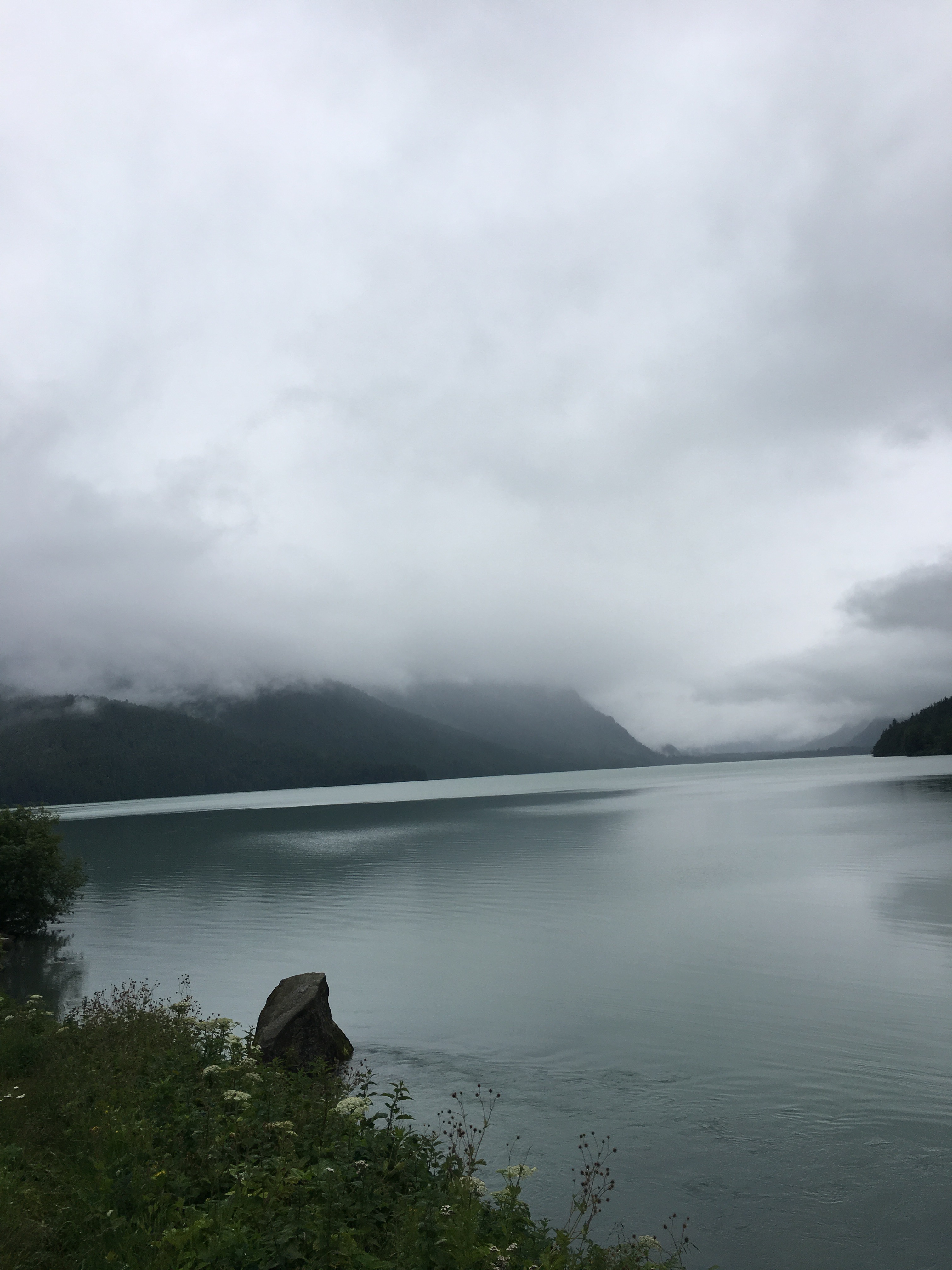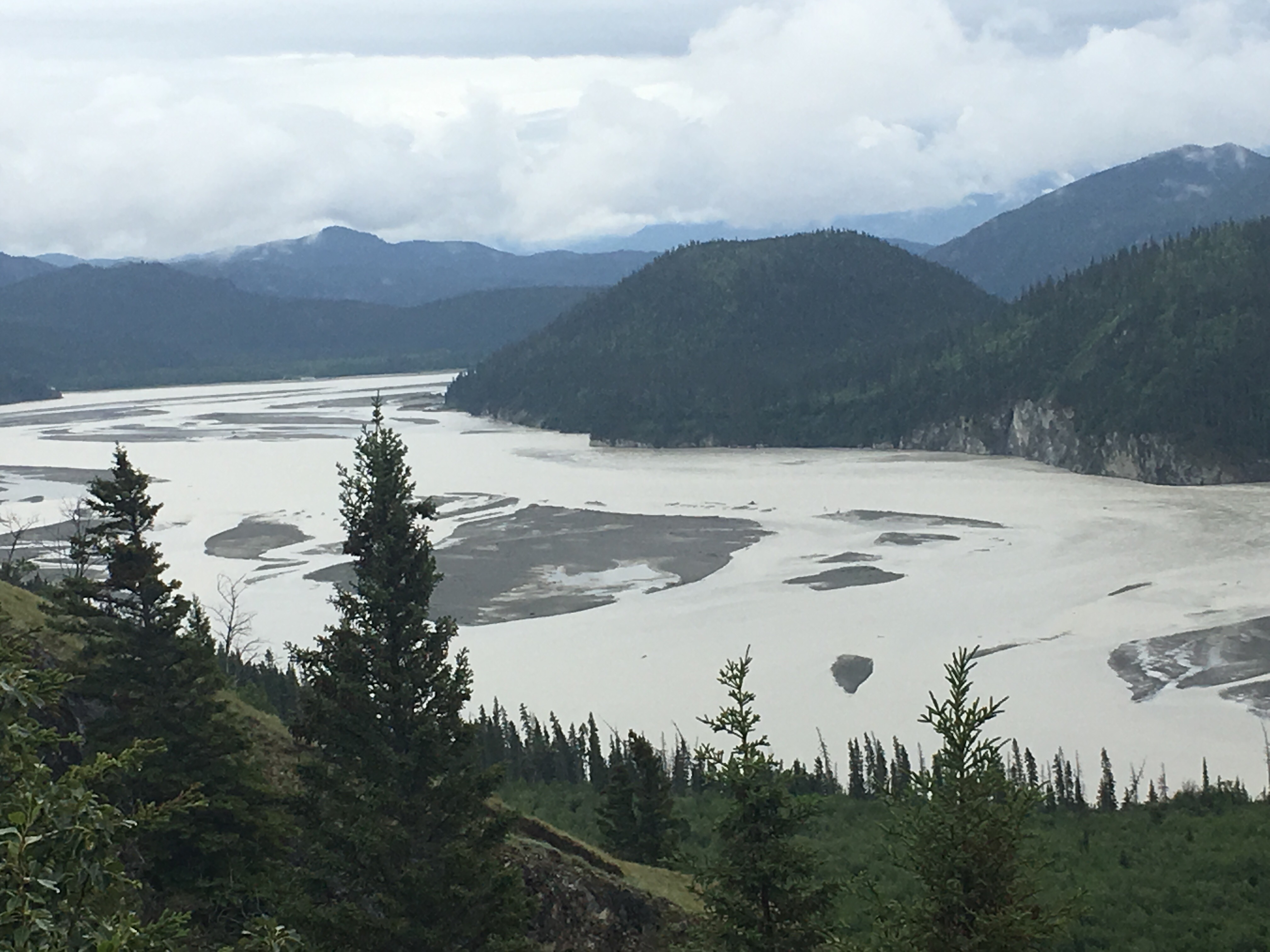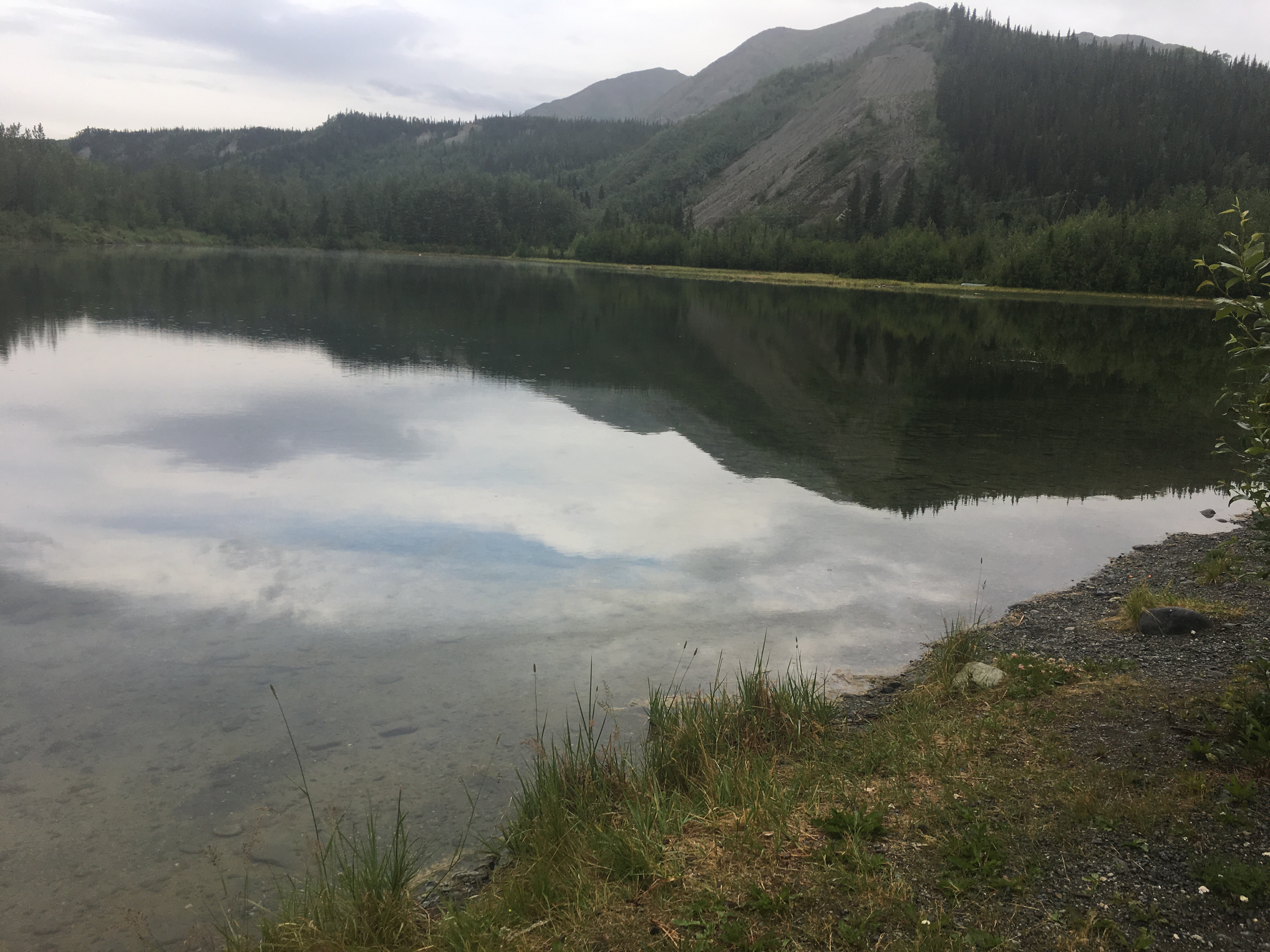 Now we have another favorite road to drive on and it’s from Haines Junction to Haines AL………words can’t say enough even though it was cloudy yesterday and totally foggy today and broke away some today and lifted a tad here and there also today,,,,,,it was beautiful…….I need a Thesaurus to find another word, I’m sure you all are getting tired of ‘beautiful’ ahahahahaha A gal in the store in Haines Junction when she found out we were heading this way, she said it just gets prettier, and the trees get bigger and she was correct.
