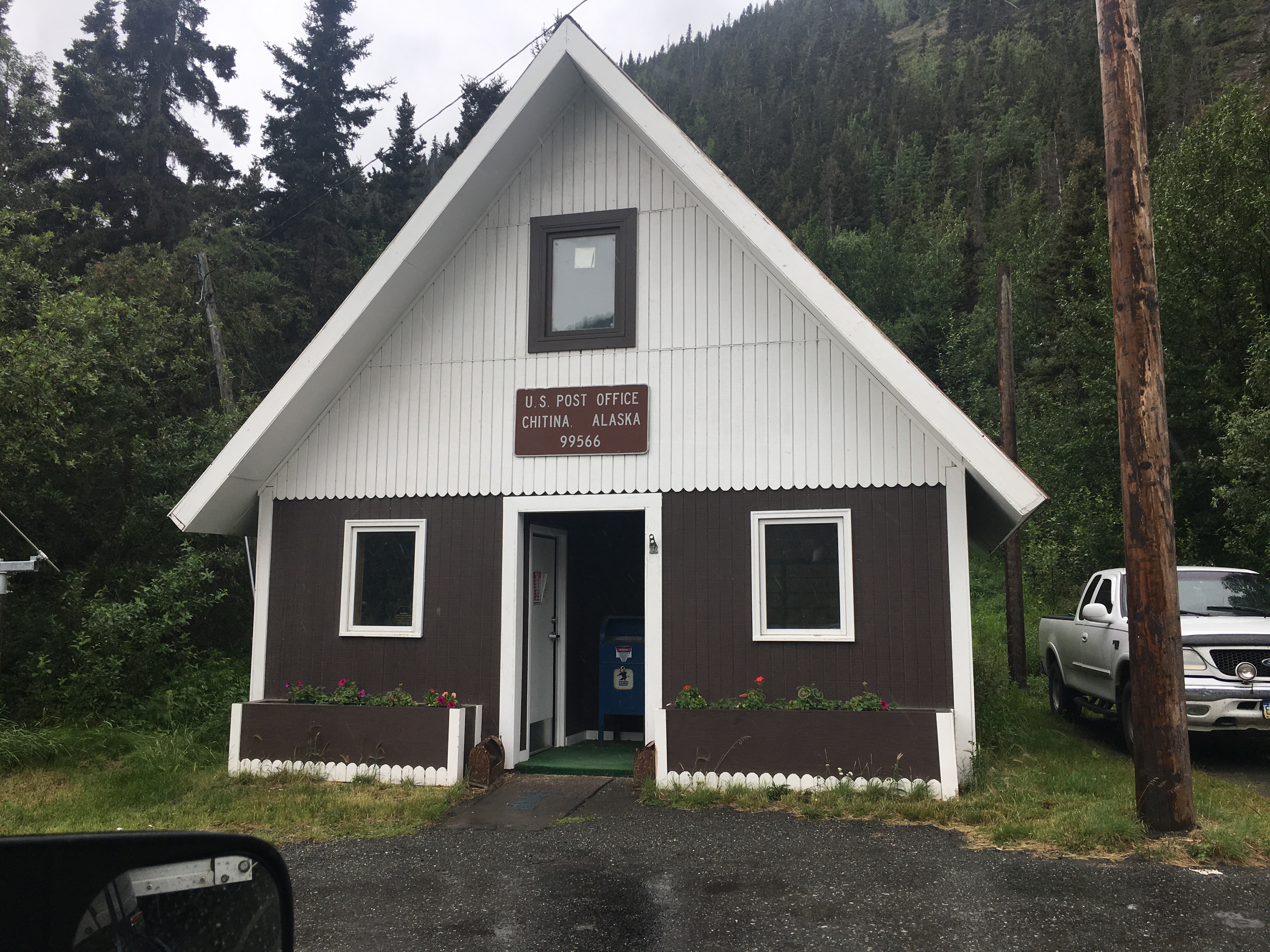 It’s 7 pm and we’ve survived the camper all afternoon, the bathrooms are just 30-40 yds. away, rain is slowing down bunches!! and I’m ready to post this and go walk in the rain for a bit. My rain coat hasn’t been worn so much for one day ever!! plenty of times in the past just not ever worn all day long!!! hahahah oh pics of coming into Valdez next!!!!