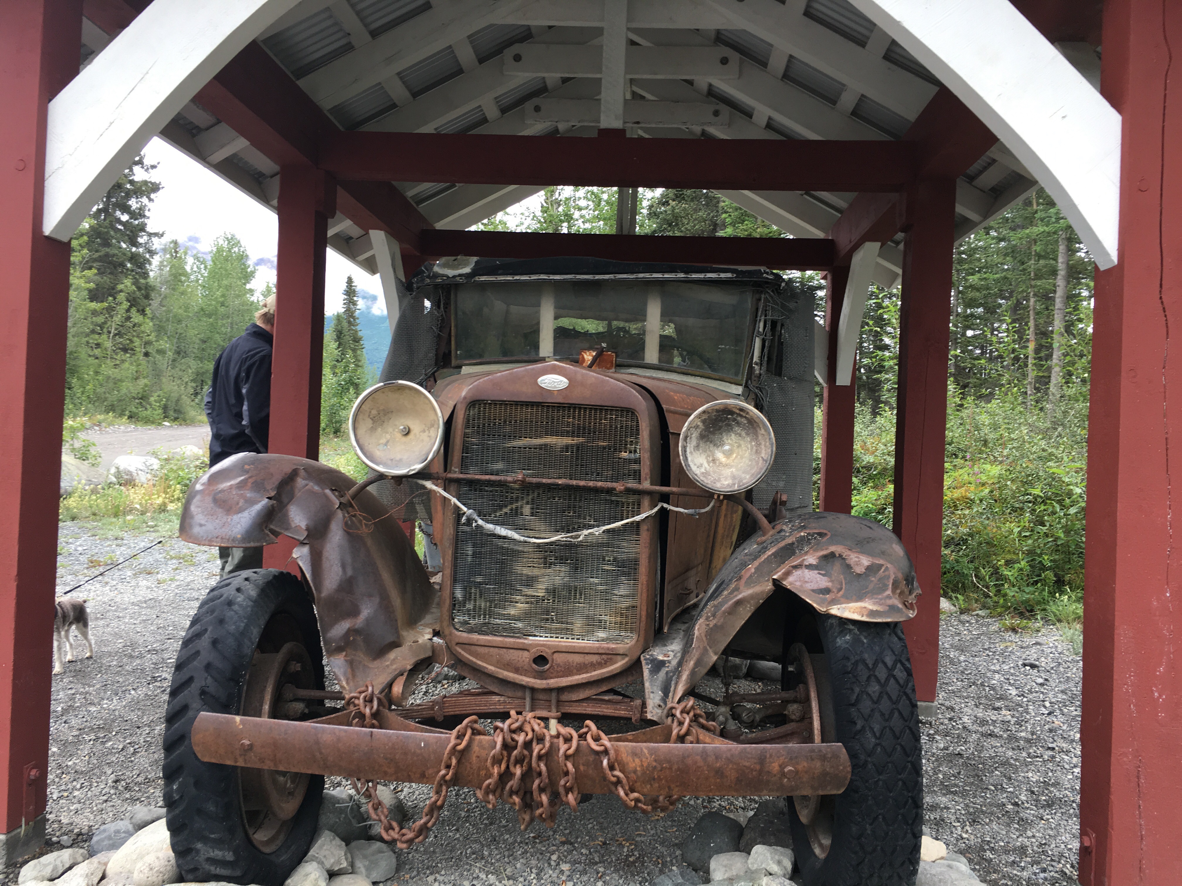 Walked by a community garden. Old vehicles flowers planted in discarded wheelbarrows truck beds pics on other camera I’ll post later. Sorry! The view here is spectacular Root Glacier looks like it’s spilling out and over from the mountains north of us!!! Hope to hike to and on it with a guide.