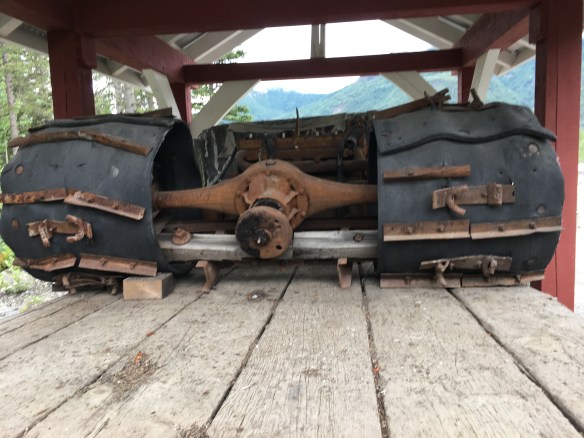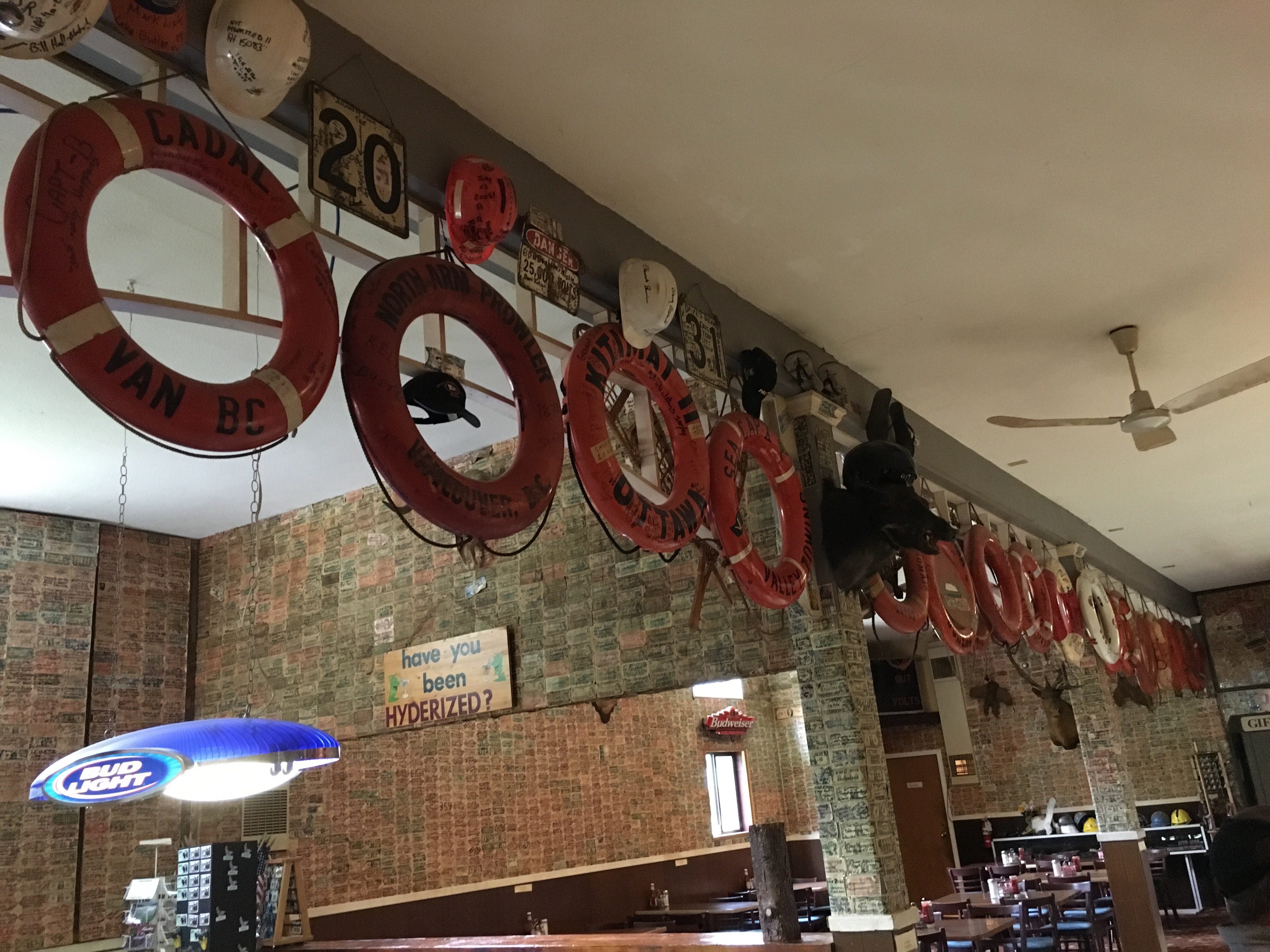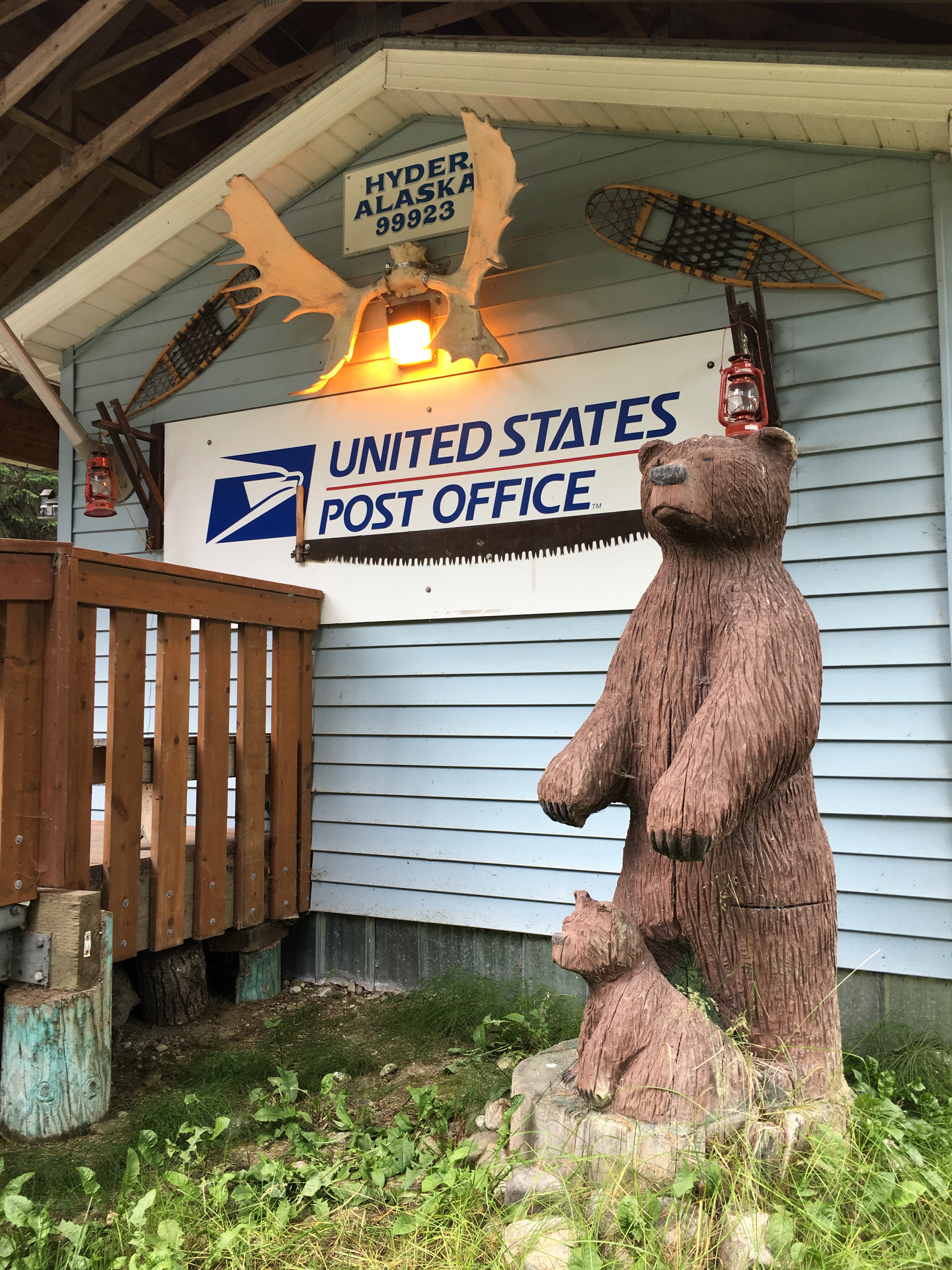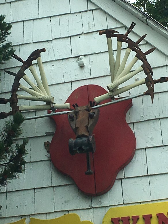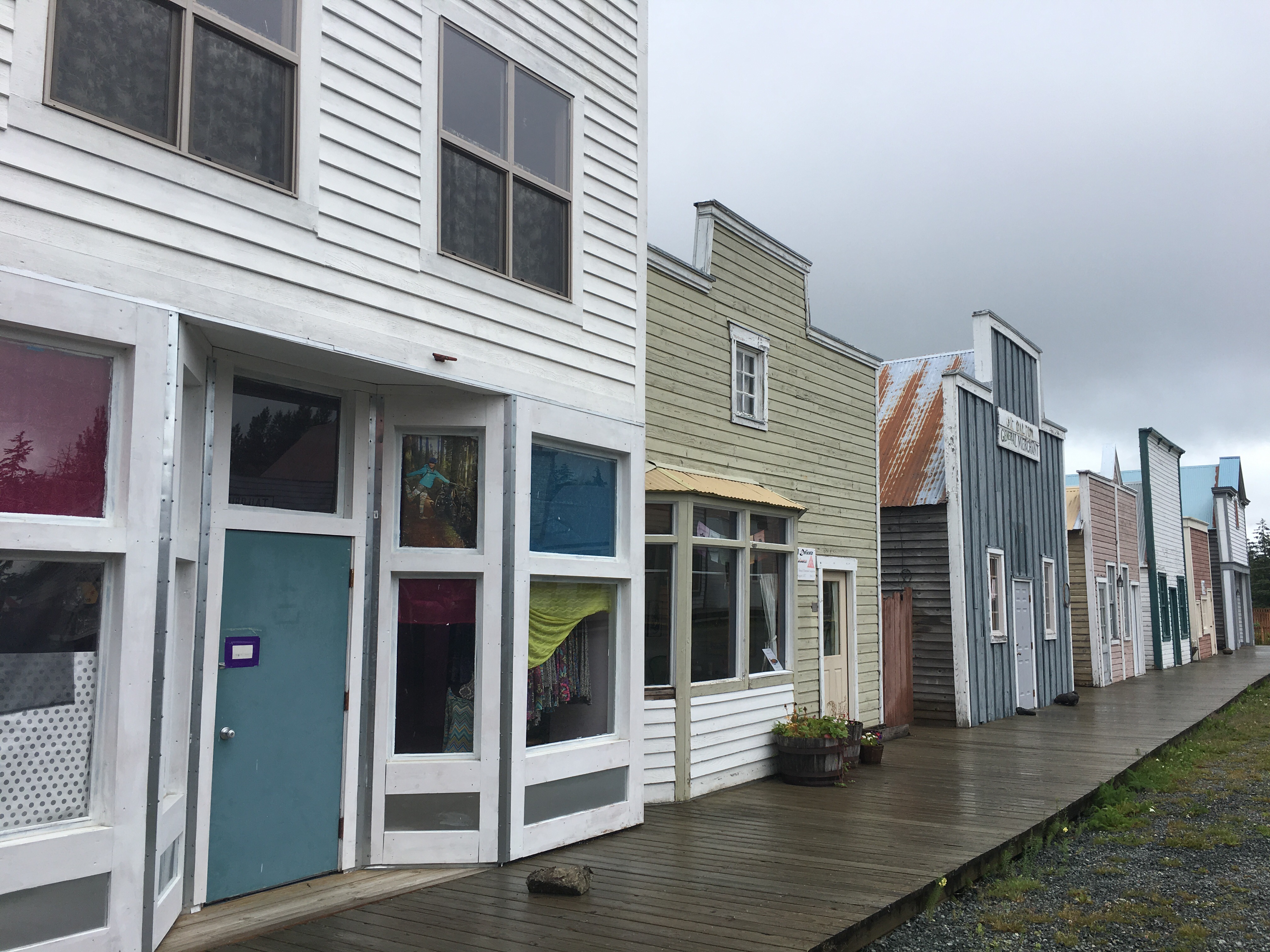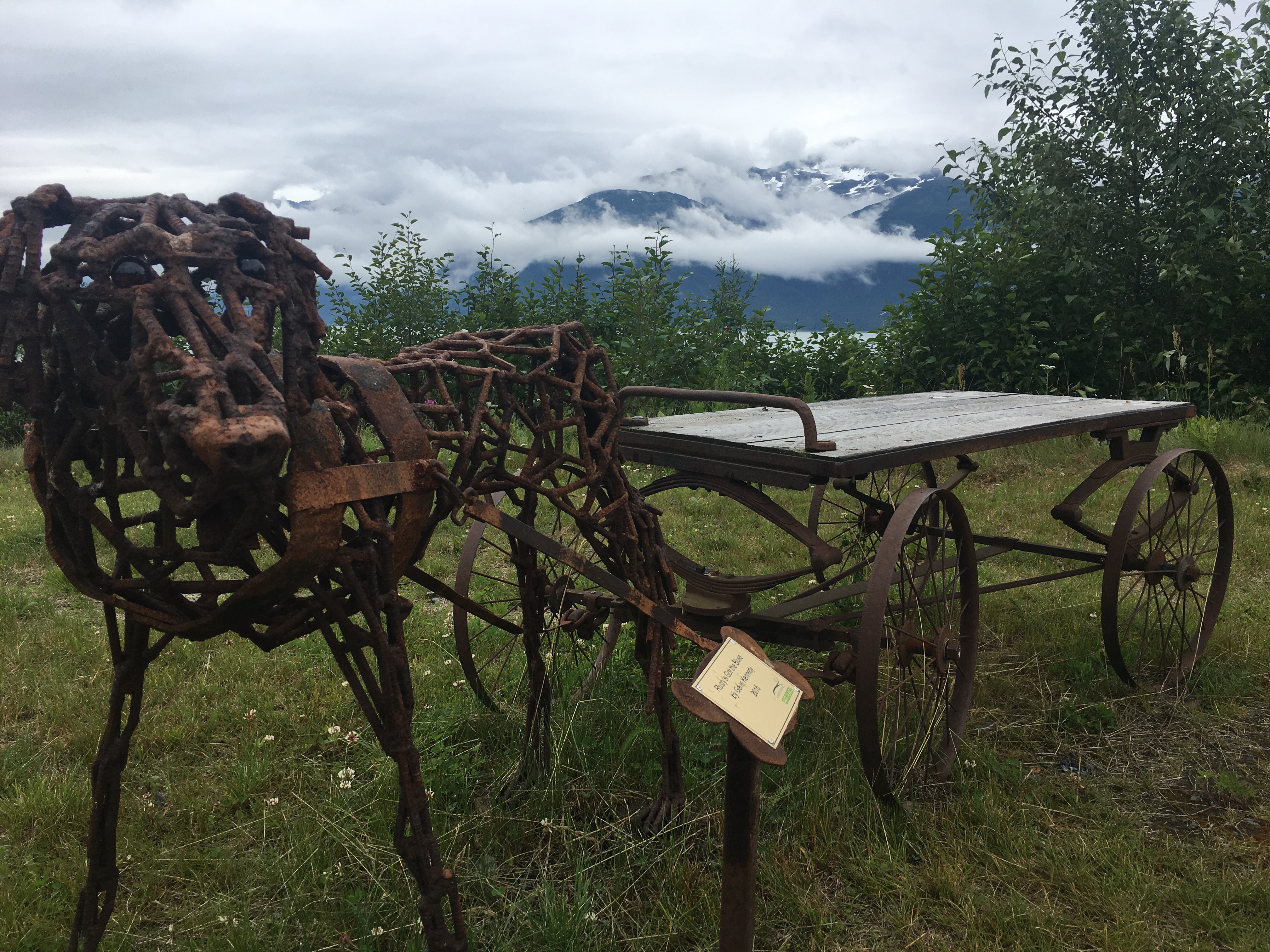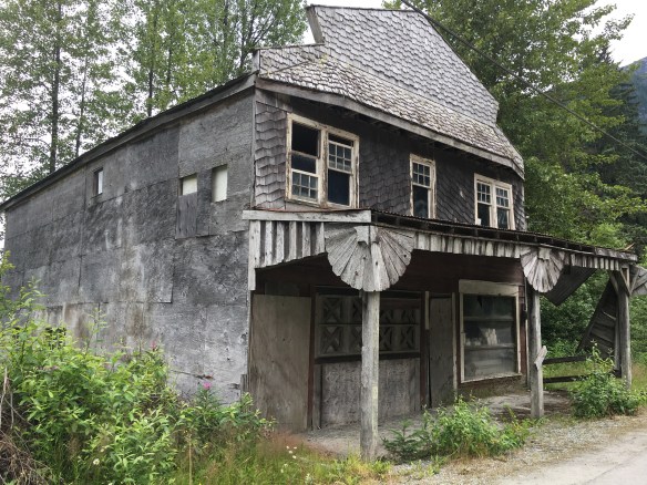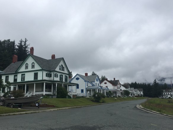 Eclectic and quaint! Quiet and lots to do in Haines! Laundry matt moose antlers lady of the business shot it! Their inside door comes down at night and a timer opens it up bright and early to make early birds happy!! A fish fence artwork with plastic bottle caps/lids! The old set at their fairgrounds from the movie ‘White Fang’. Oh houses st the top of a hill that originally part of Ft. Seward most looked like they were converted into condos! They were huge! Easily 3000 sq. ft. Went to a hammer museum few thousand hammers there cliff loved it! It was very very interesting!!