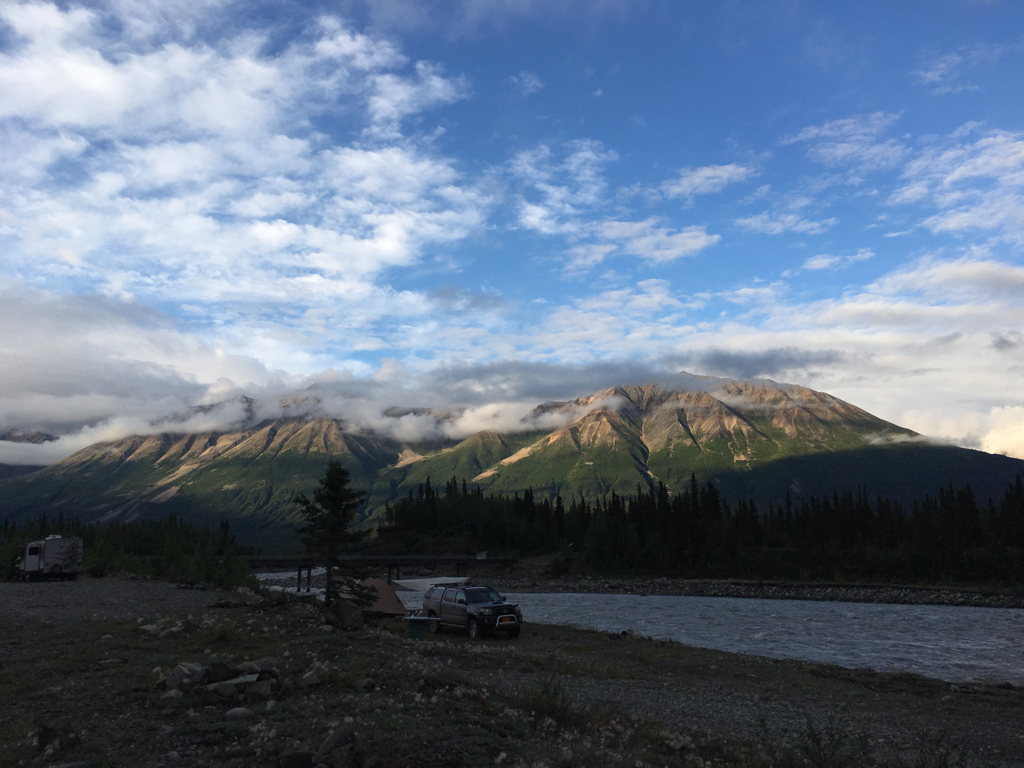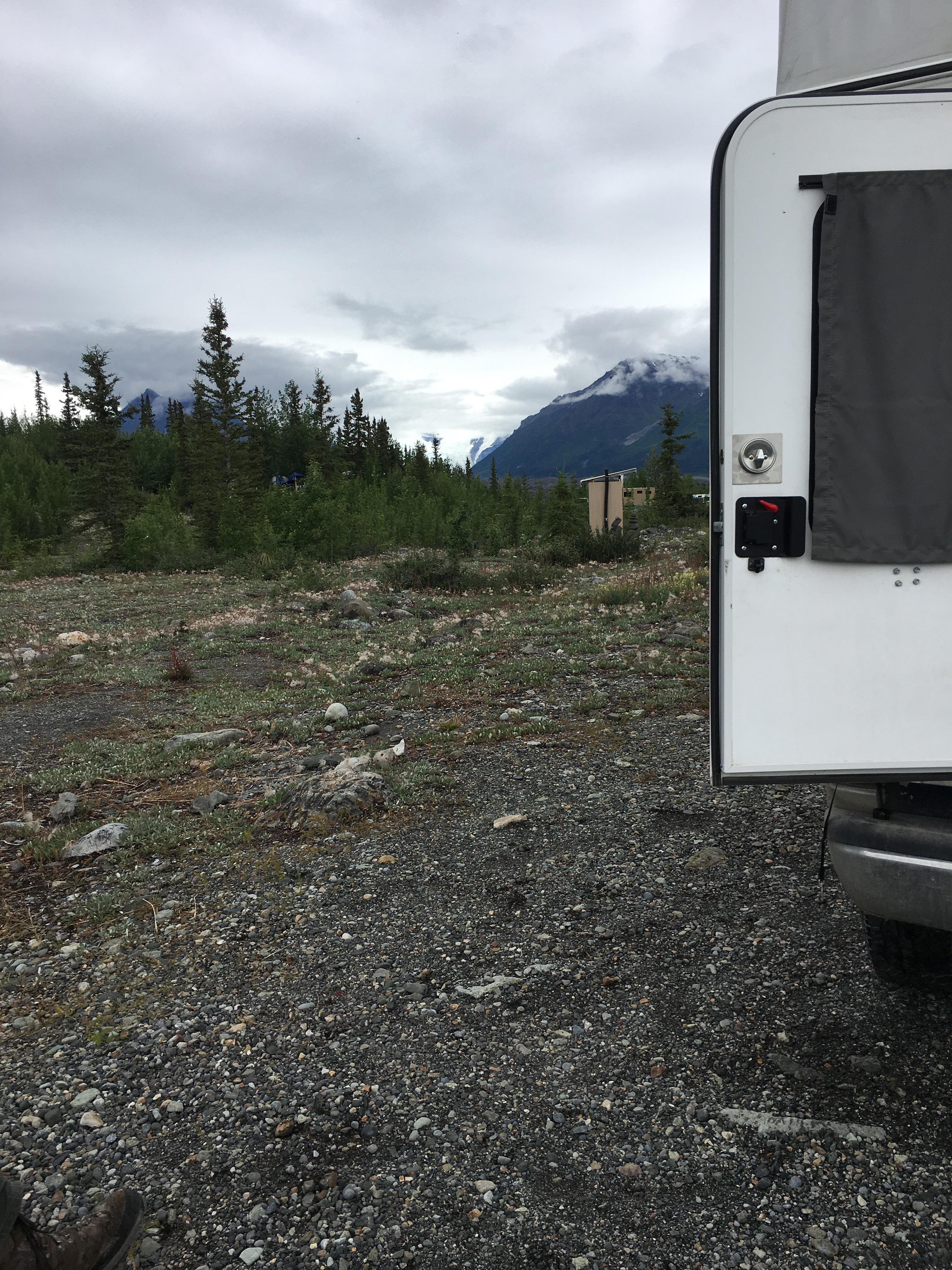 So we are about 90 miles off of the Richardson highway east into the biggest national park Wrangell-Elias and I have LTE service which means here up north I can DO stuff on my phone. I found out in the Kenai Penensulia 3G and 4-5 bars of service didn’t mean a thing! 😢😏. Calls I could make and receive and robo texts I received but nada else!