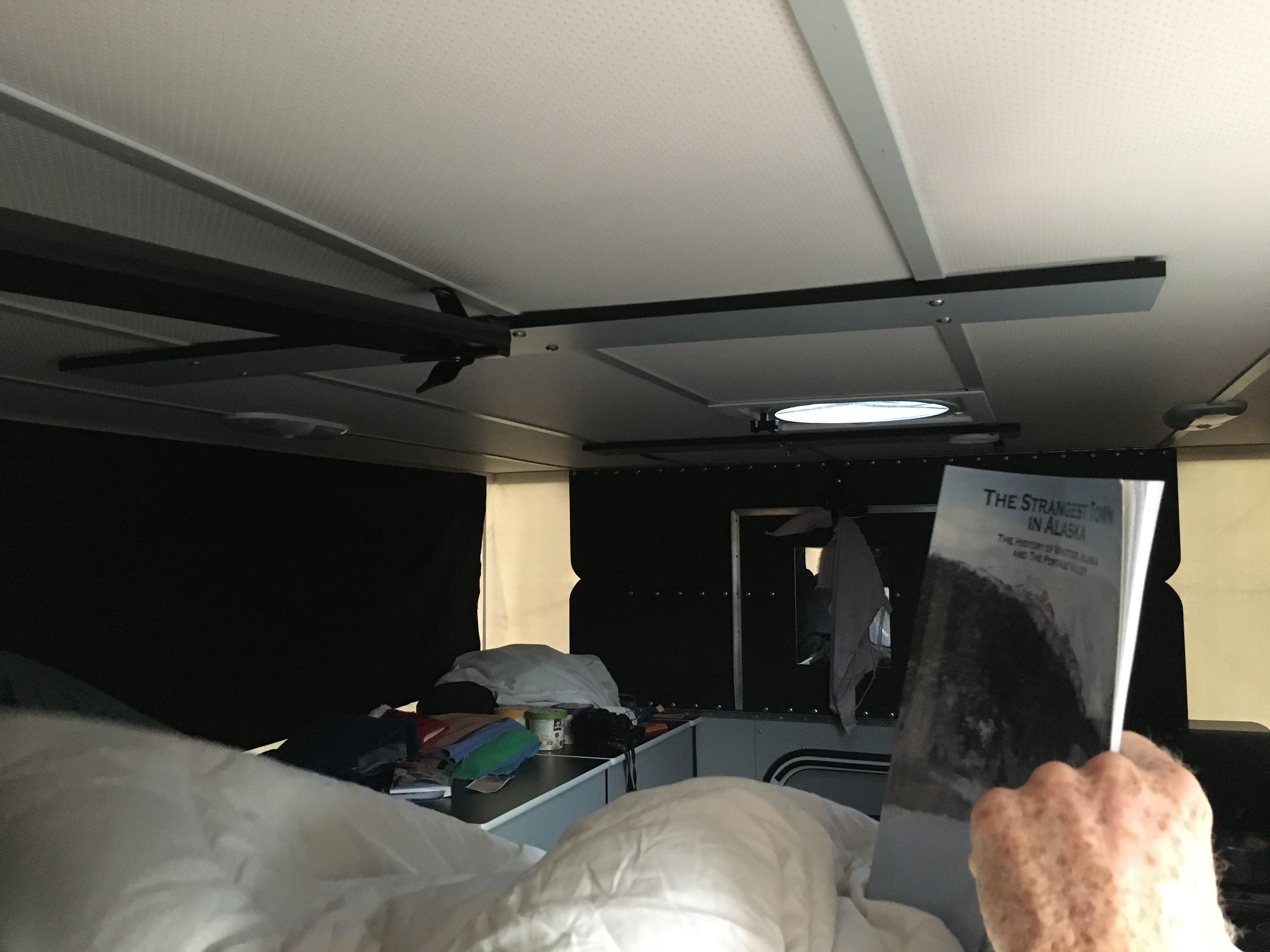 At a KOA, they are pretty dependable for clean showers and toilets. Easy going campers also. But something about Alaskans, while camping in Talkeetna and last night here, Alaskans seem to like to shoot at night, like 12:30ish… um.. Let me tell ya Cliff said you could hunt all night long here it’s that light out, but sundown here is at 11:10pm so a very long day for hunting.