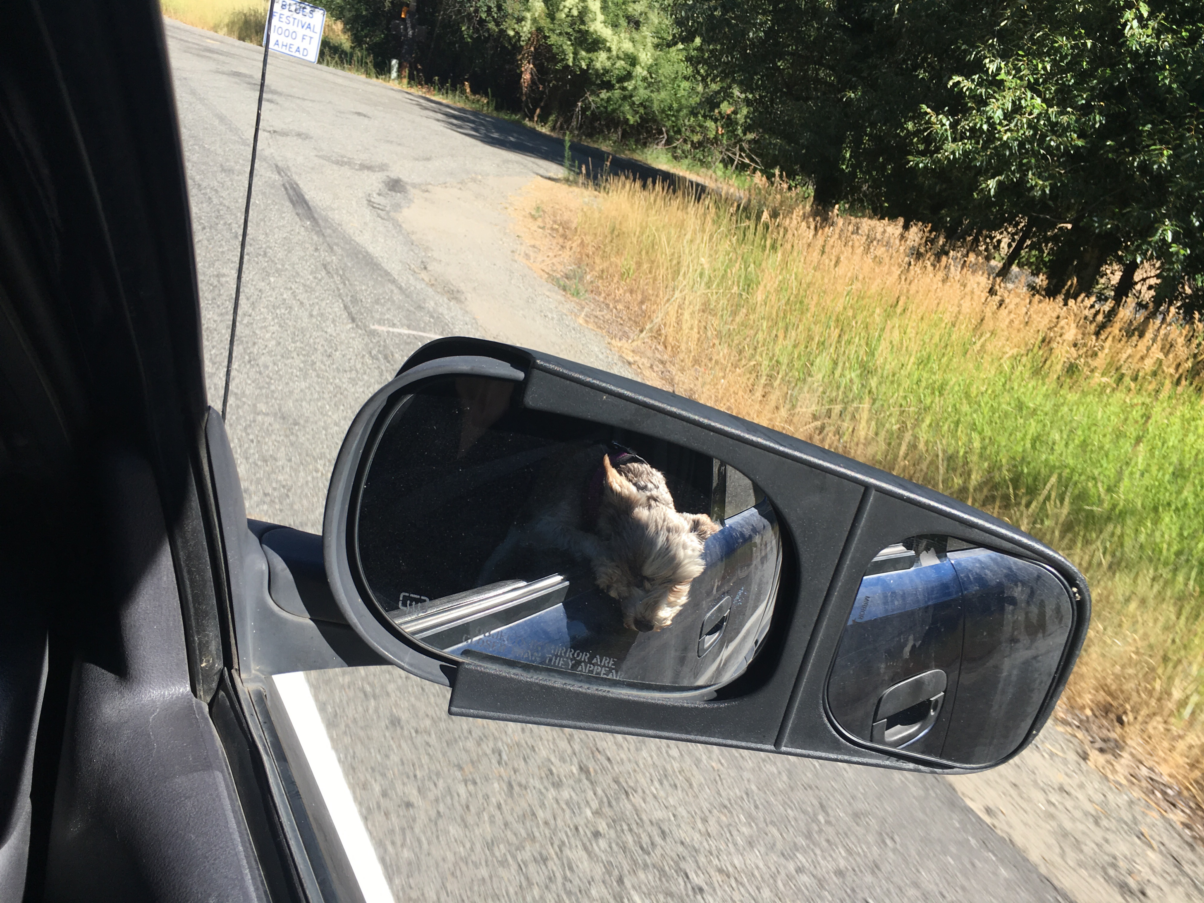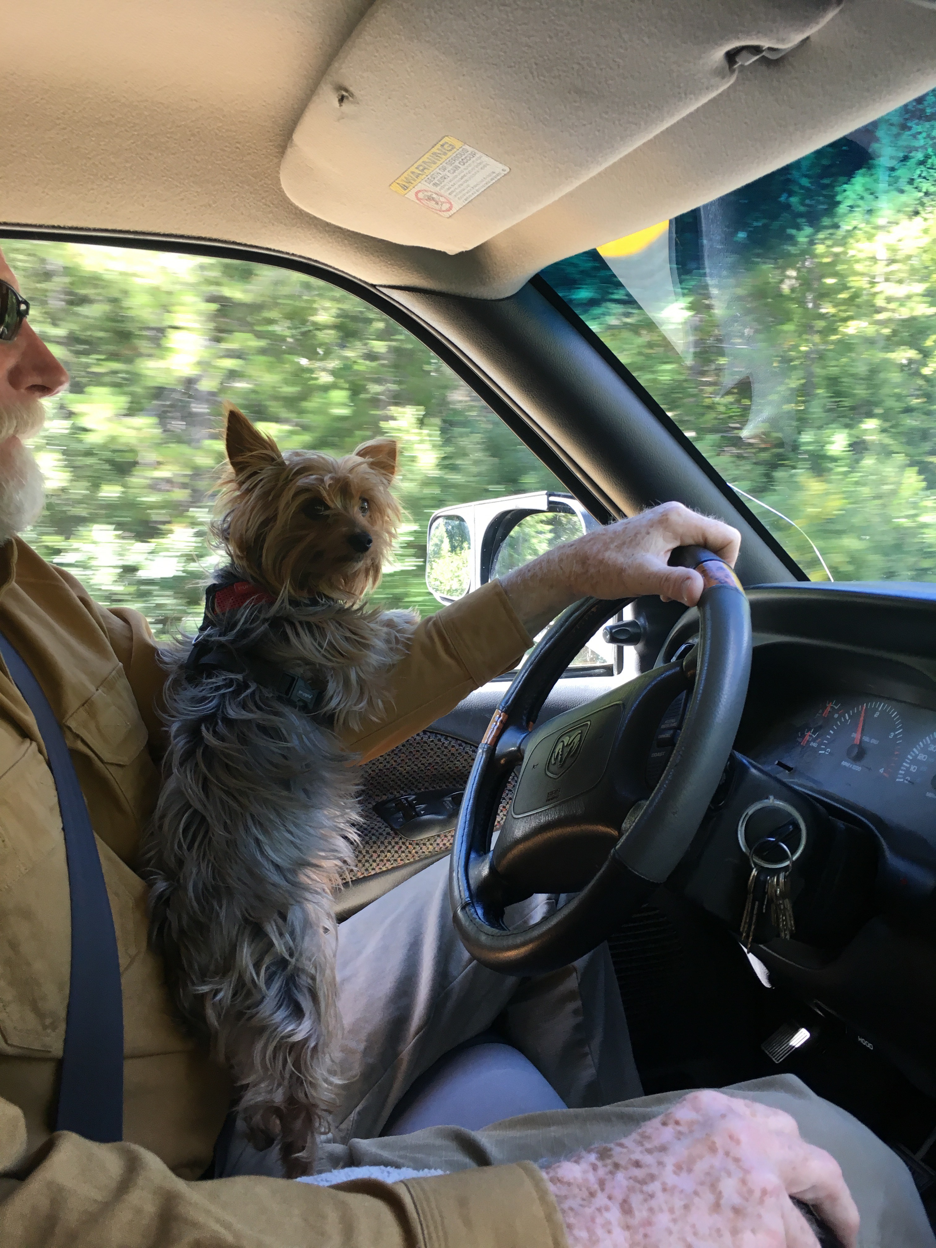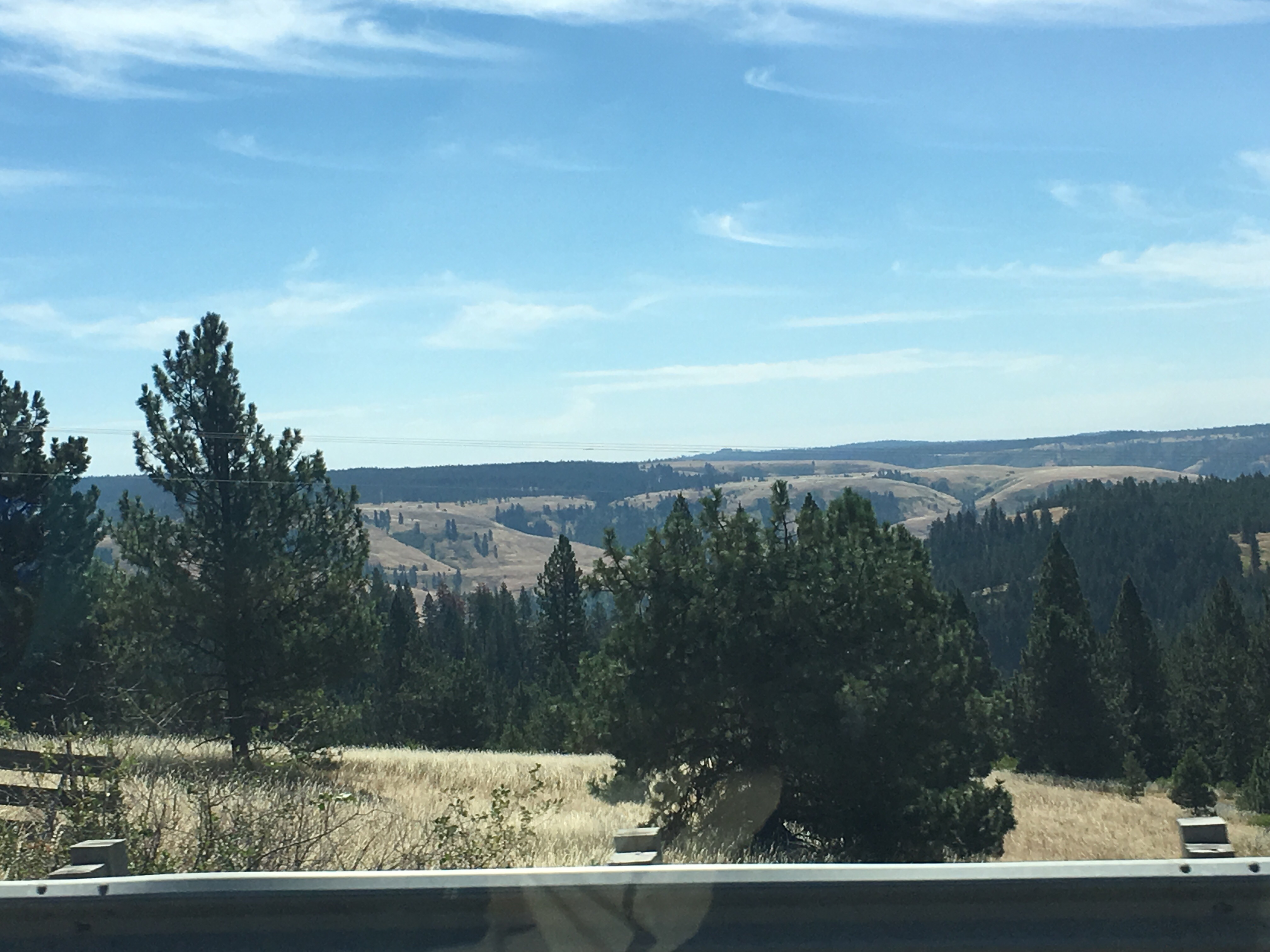 Oh so our alternate route because of the fires was an awesome road, and the scenery didn’t disappoint either, we saw a sign at their information center ( we call them visitor centers) evacuee station b/c of the fire, but we didn’t want to camp in their parking lot, but we decided to camp in a parking lot of this rest area just a tad up the road……ha go figure, guess it was better because it had trees ahahahaha first day we had driven over 10 hours, it had been 12.5 hr. this day Thursday the 20th., we were on a mission to get back, but Oakley and Henri had a ball running around, Cliff decided to not put them on the leash and they ran in circles, growl at each other chase each other, FREEDOMMMMMMMM they were saying I bet!!!!! J Oh there happened to be two other campers there and when we woke up four more came in after us, safety in numbers esp. when your breadking the rules, but we all guessed that it was fine because of the closure of 97!! and all us campers needed a place to park for the night.