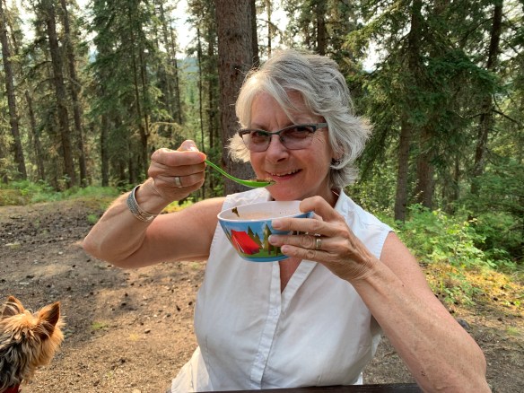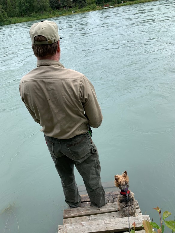 Henri is getting tired of this life, he did last time also!! Around the cabin is the only place they are off leash and he loves to run. We walk down the lane or street as they call it here but a momma moose and her calf have been hanging out so our maybe 1/3 mile walk has to be on a leash. π€π. Oakley is happy because Cliff is here and that’s all she cares about! She wanted to jump in yesterday to get to him in the river. He was only about 3ft away but I think she’d have jumped in if not for the leash holding her back. π¬π¬π