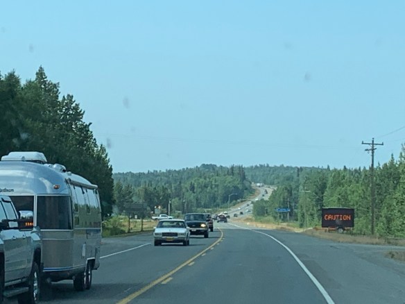 Another night of snoozing to rain on the roof. It sounds harder on a camper roof as those of you who have slept in a camper know!! ππ. But it is very noisy no matter what. Not too often can I not go to sleep when it rains. And besides hopefully it’s raining up by Fairbanks too to put out the fires!!!